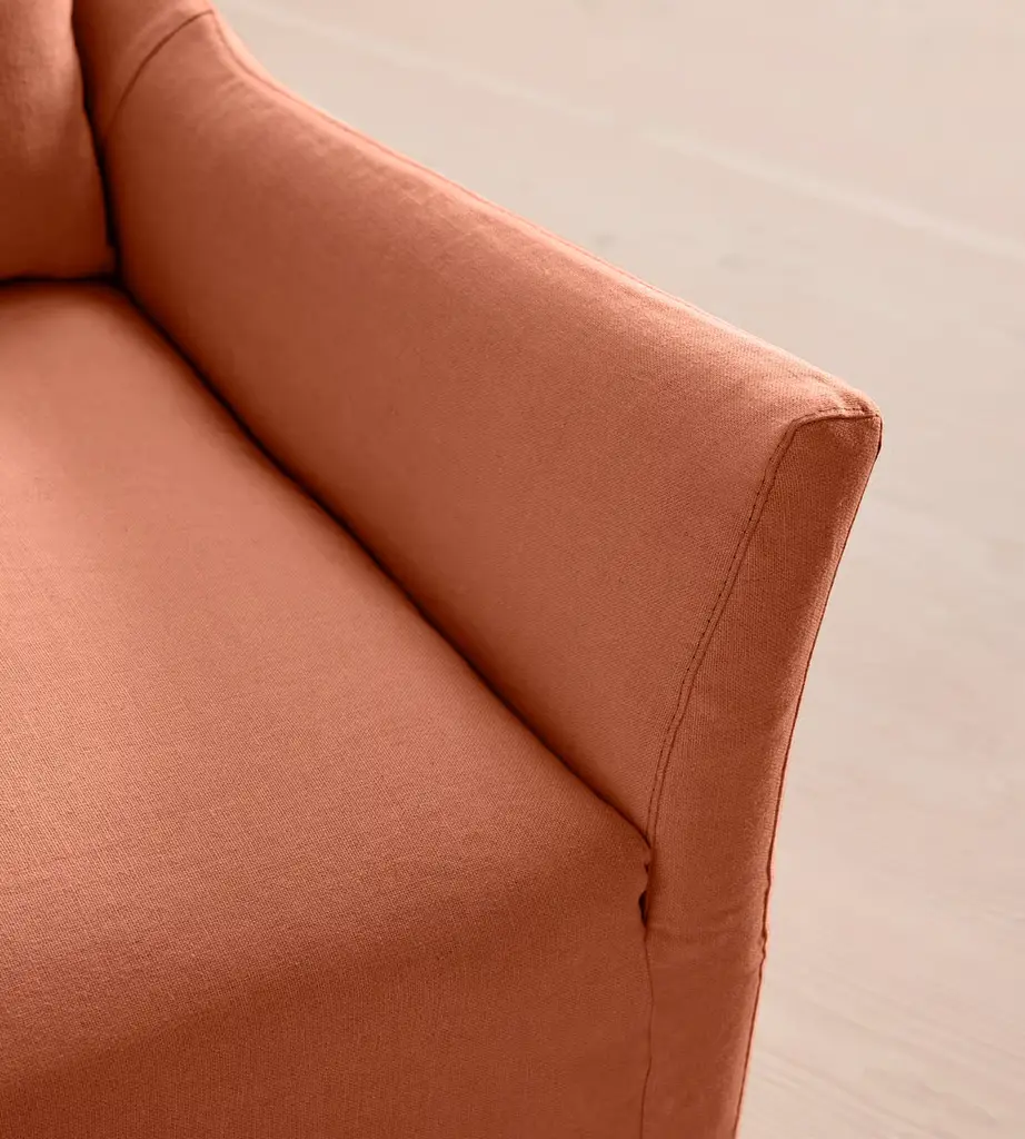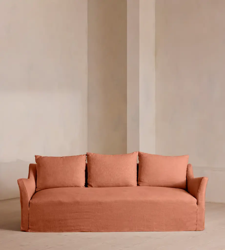 Taking its cues from the open-plan barn spaces at Soho Farmhouse, our Roma sofa features a wide seat and flared arms - great for relaxed lounging and socialising with friends. Designed with a tailored linen slip cover, partner with the Roma loveseat and ottoman to recreate our cosy, country house look.