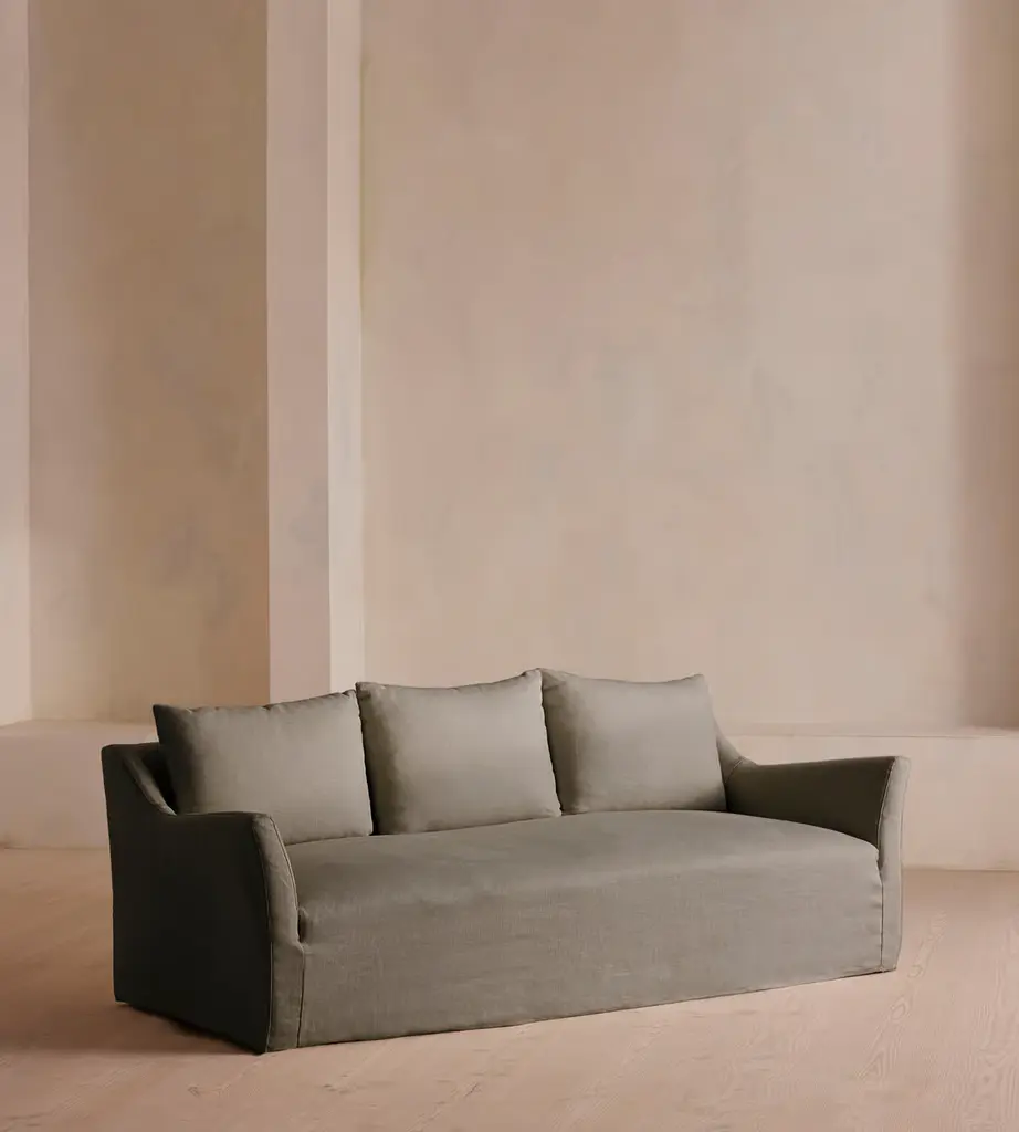Taking its cues from the open-plan barn spaces at Soho Farmhouse, our Roma sofa features a wide seat and flared arms - great for relaxed lounging and socialising with friends. Designed with a tailored linen slip cover, partner with the Roma loveseat and ottoman to recreate our cosy, country house look.