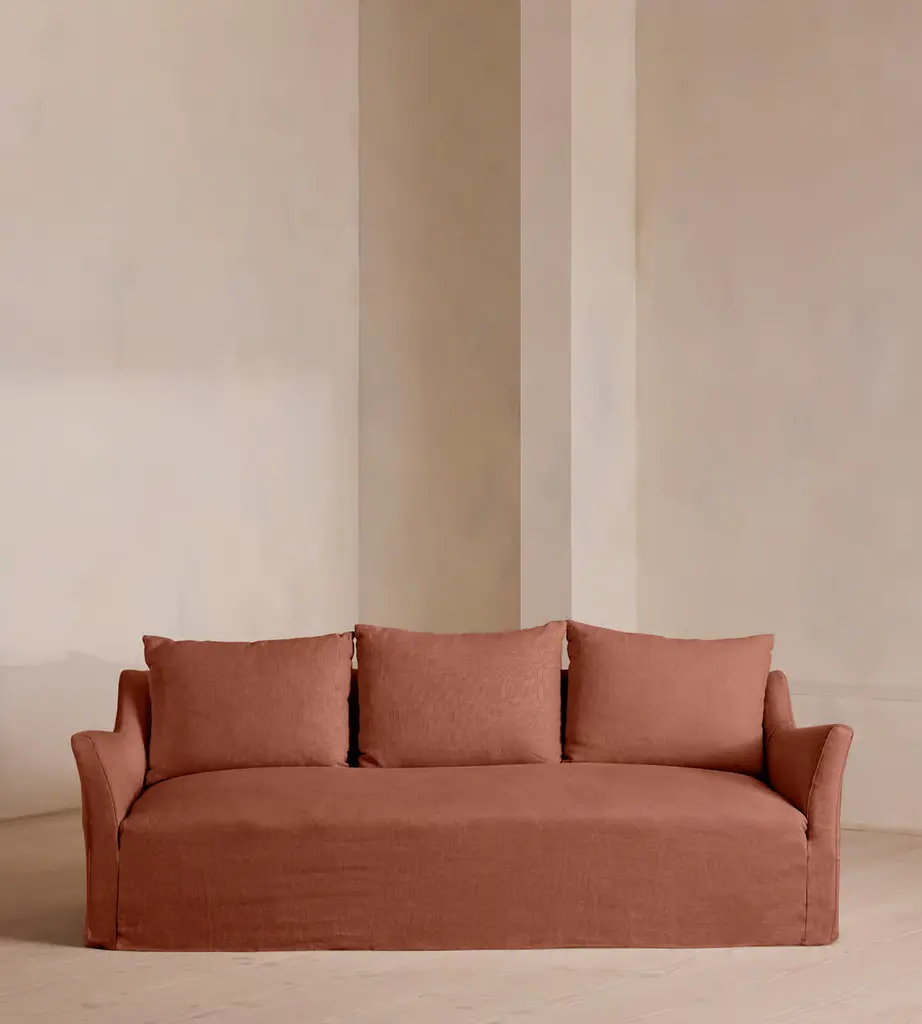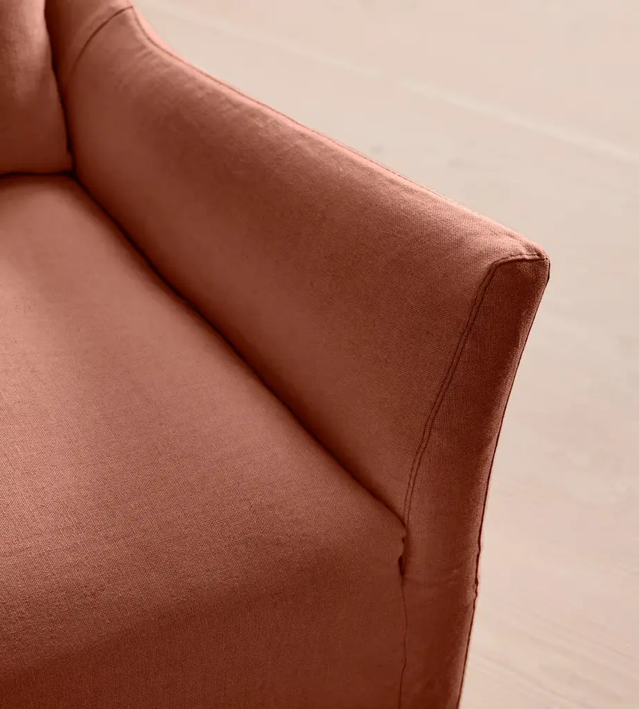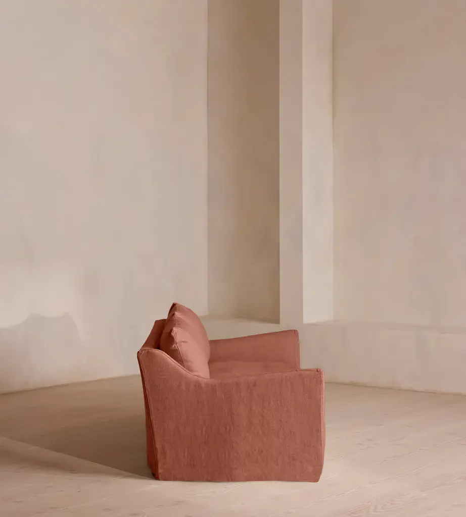Taking its cues from the open-plan barn spaces at Soho Farmhouse, our Roma sofa features a wide seat and flared arms - great for relaxed lounging and socialising with friends. Designed with a tailored linen slip cover, partner with the Roma loveseat and ottoman to recreate our cosy, country house look.