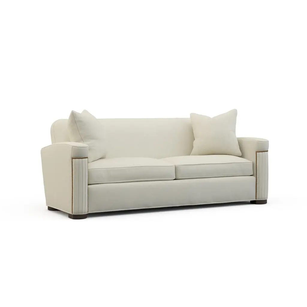 A Kathy Kuo Home exclusive, our 88” Rosehill sofa puts a modern twist on the traditional Chesterfield style. Designed without pleating for a cleaner look, the timeless silhouette highlights rolled arms, a tufted back, and turned wood legs. A simple, sophisticated bench seat features a custom cushion fill—hypoallergenic Trillium® fiber holds its shape and offers all the comfort of down without the fluffing maintenance. This charming sofa is a perfect choice for any classic living room.