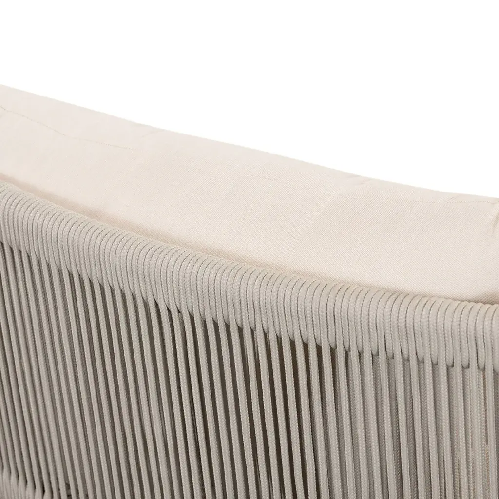 Made with FSC-certified eucalyptus, tapered legs and paddle arms lend a slim, shapely look to outdoor-friendly sofa seating with durable, Velcro-secured box cushions in a versatile ivory. Linear rope detailing on back adds novel texture. Cover or store indoors during inclement weather and when not in use. Ships In 10-14 Business Days Rope back UV-resistant performance fabric cushion Natural eucalyptus frame This image is for illustrative purposes only. The colors shown are accurate within the constraints of lighting, photography, and the color accuracy of your screen.