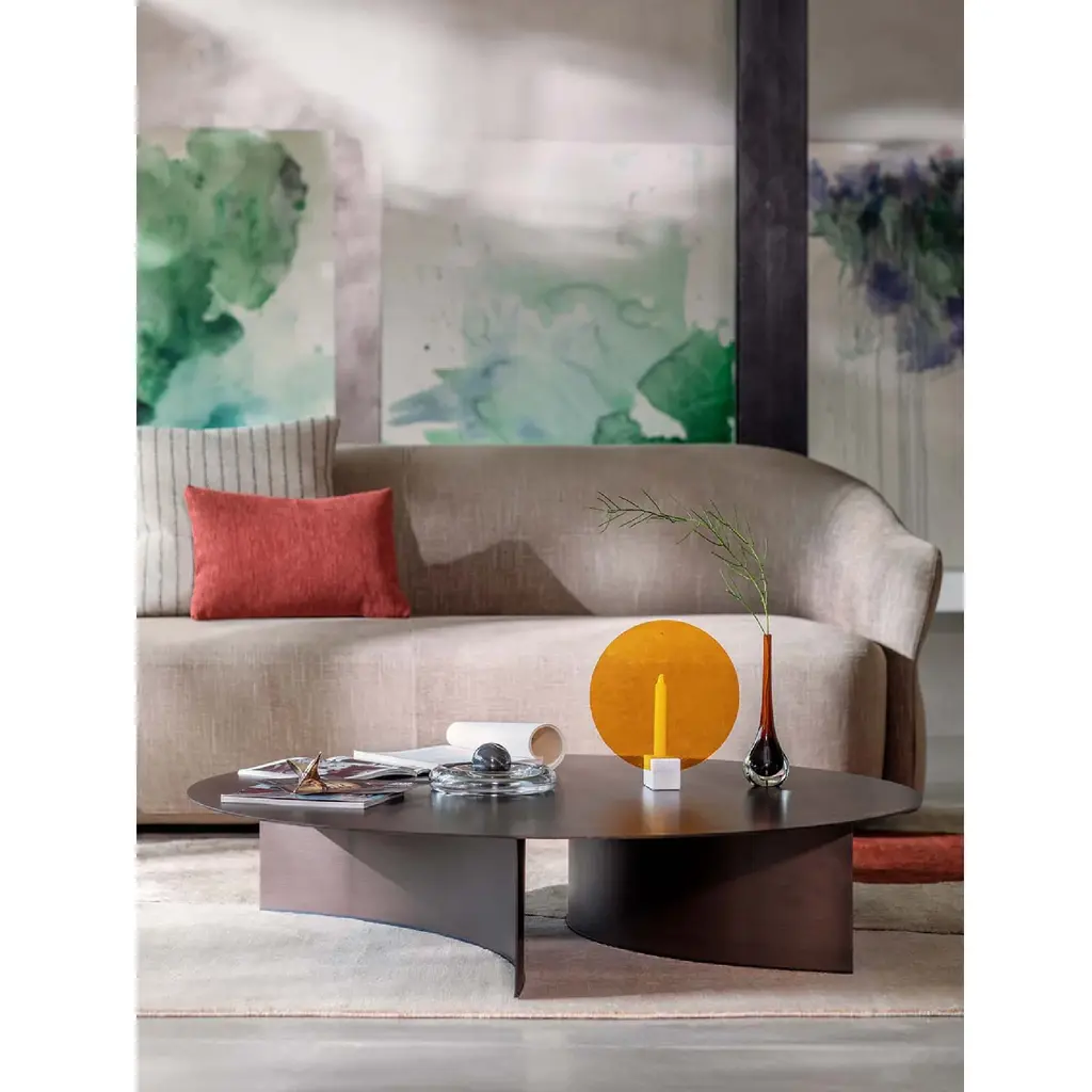 Indulge in luxury and sophistication with the Madame Butterfly 3 seater sofa. Its rounded, delicate shape embraces your body, providing ultimate comfort and a sense of security. Delicate touches, such as an anodic bronze finished tubular pipe, add elegance and decorative flair. Choose from removable fabric or leather upholstery.
