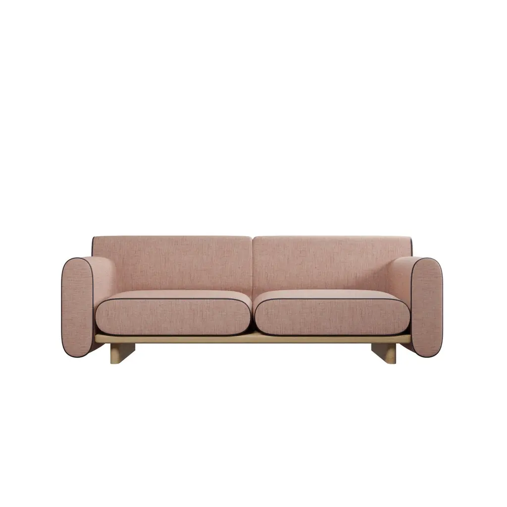 The TILDA two-seater sofa exemplifies minimalist elegance with its smooth lines, elegant curves and refined wooden plinth. Its distinctive shape not only creates a sense of fluidity and grace, but also greatly enhances its inviting appearance, making it a perfect piece for modern interiors. The sofa's unique curvature adds a touch of sophistication, ensuring a comfortable and relaxing experience. Whether you want to relax after a long day or host guests, the TILDA sofa provides a versatile and elegant seating solutions. Its timeless design blends perfectly with various decor styles, making it a standout addition to any living space. The combination of form and function in this piece makes it a testament to the beauty of simplicity in furniture design.