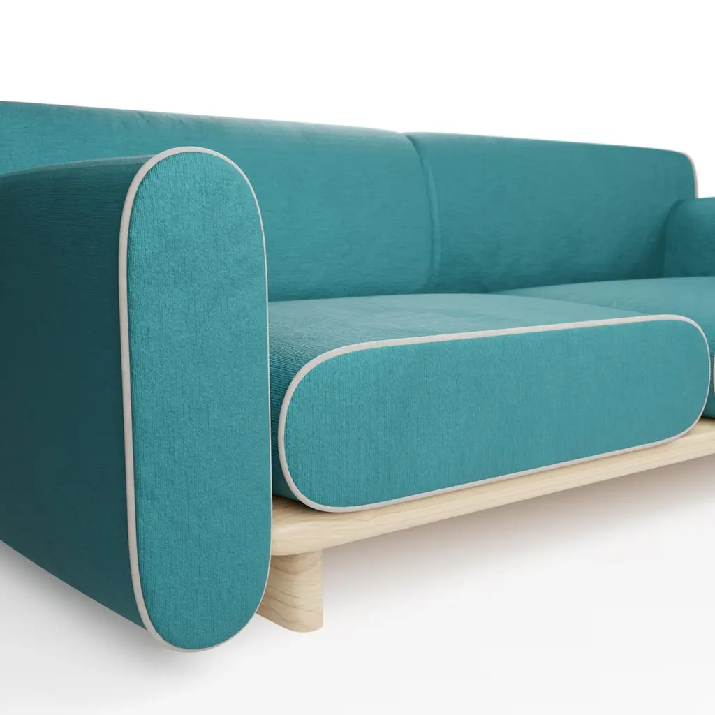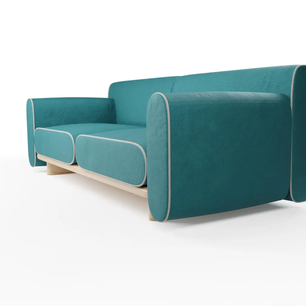 The TILDA two-seater sofa exemplifies minimalist elegance with its smooth lines, elegant curves and refined wooden plinth. Its distinctive shape not only creates a sense of fluidity and grace, but also greatly enhances its inviting appearance, making it a perfect piece for modern interiors. The sofa's unique curvature adds a touch of sophistication, ensuring a comfortable and relaxing experience. Whether you want to relax after a long day or host guests, the TILDA sofa provides a versatile and elegant seating solutions. Its timeless design blends perfectly with various decor styles, making it a standout addition to any living space. The combination of form and function in this piece makes it a testament to the beauty of simplicity in furniture design.