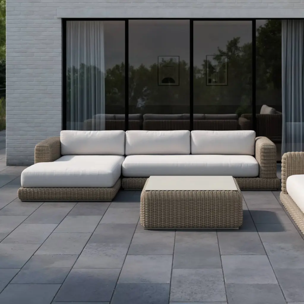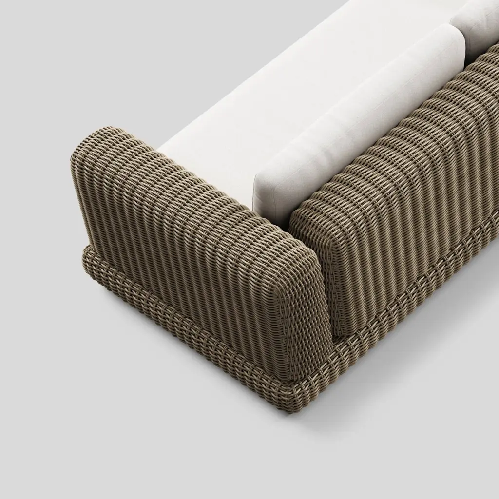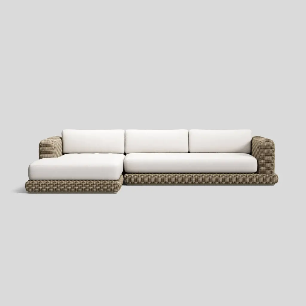 Made with woven all-weather wicker, the Roundabout Chaise Sofa is high-performance, low-slung, and groovy all around. Stretch out with broad bench cushions, extra deep seats, and a chaise that sits more like a daybed. Fade-proof Sunbrella® fabric and plush back cushions complete the coupe.Roundabout's modular pieces let you create your own seating setup with multiple size and shape possibilities. Add seats to create a sectional or perks like a built-in side table or coffee table with hidden storage.