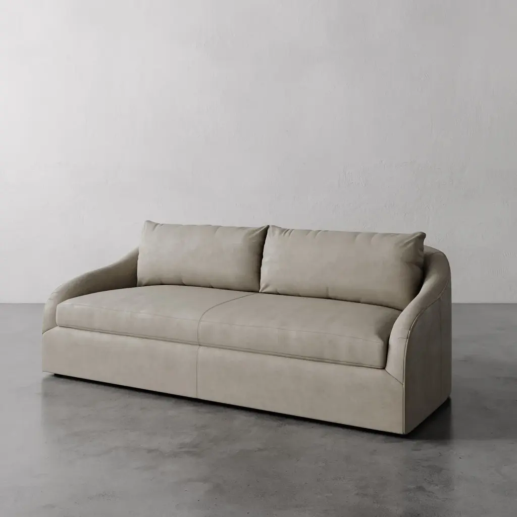 The Rousseau Leather Sofa from Lemieux et Cie is a study in quiet elegance, its graceful lines and sculptural silhouette evoking the refined restraint of 1940s French design. The subtly sloped arms lend a soft curvature, recalling the enveloping sophistication found in the interiors of Chanel’s Rue Cambon apartment. Made-to-order in 7 luxe leathers as well as COL, its tailored form feels both grounded and ethereal—a perfect balance of comfort and couture. With an understated yet distinct presence, the Rousseau Chair invites a timeless allure into any space, seamlessly bridging past and present.The Rousseau Sofa is handmade by skilled artisans in North Carolina.