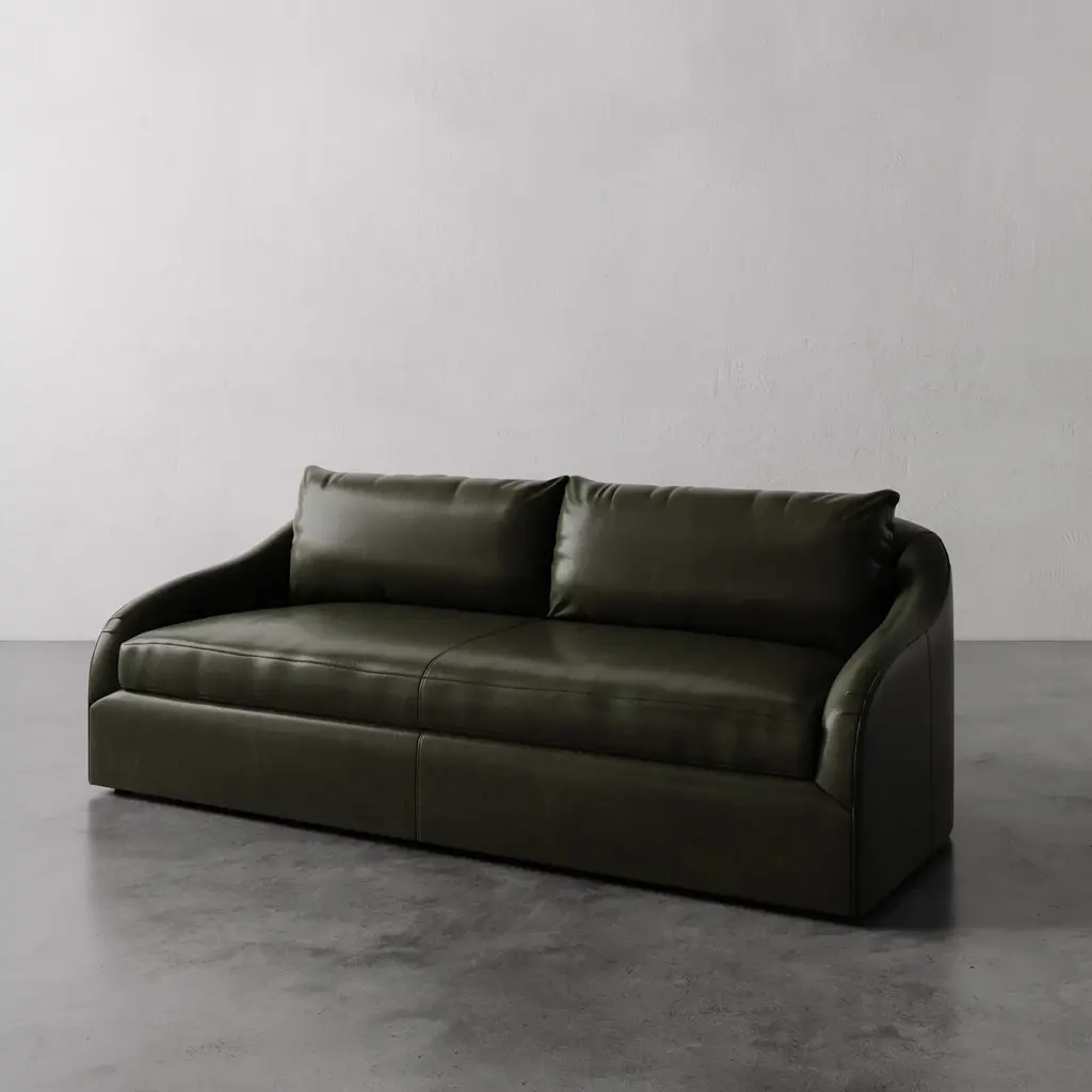 The Rousseau Leather Sofa from Lemieux et Cie is a study in quiet elegance, its graceful lines and sculptural silhouette evoking the refined restraint of 1940s French design. The subtly sloped arms lend a soft curvature, recalling the enveloping sophistication found in the interiors of Chanel’s Rue Cambon apartment. Made-to-order in 7 luxe leathers as well as COL, its tailored form feels both grounded and ethereal—a perfect balance of comfort and couture. With an understated yet distinct presence, the Rousseau Chair invites a timeless allure into any space, seamlessly bridging past and present.The Rousseau Sofa is handmade by skilled artisans in North Carolina.