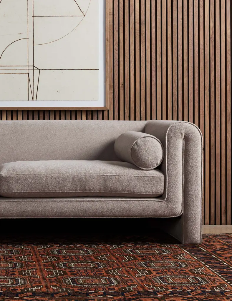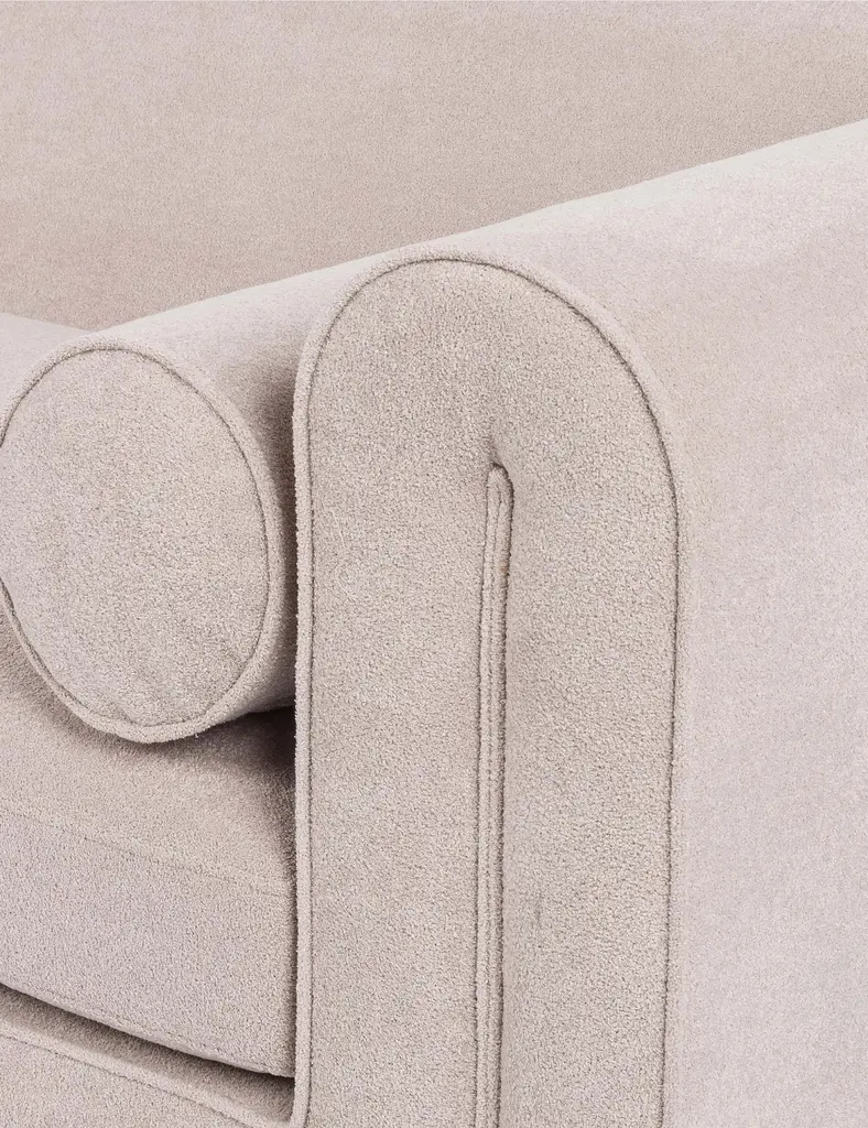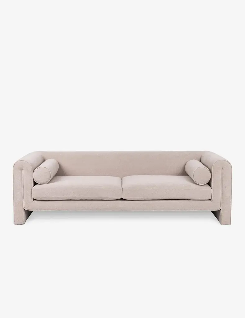 Comfort meets sophistication in this stylish sofa. Soft, upholstered lines gently curve and fold into a modern couch seat, offering a trend-forward look with timeless appeal. The clean and balanced profile blends linear elements with rounded edges and cylinder cushions for a plush yet airy design.