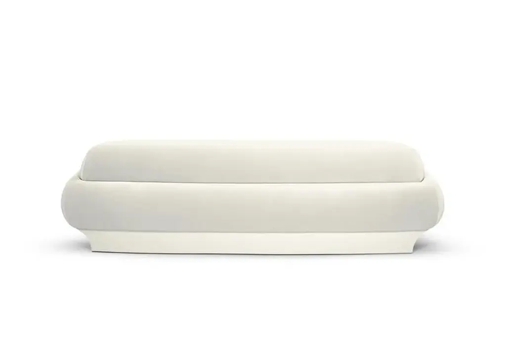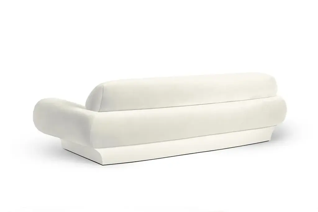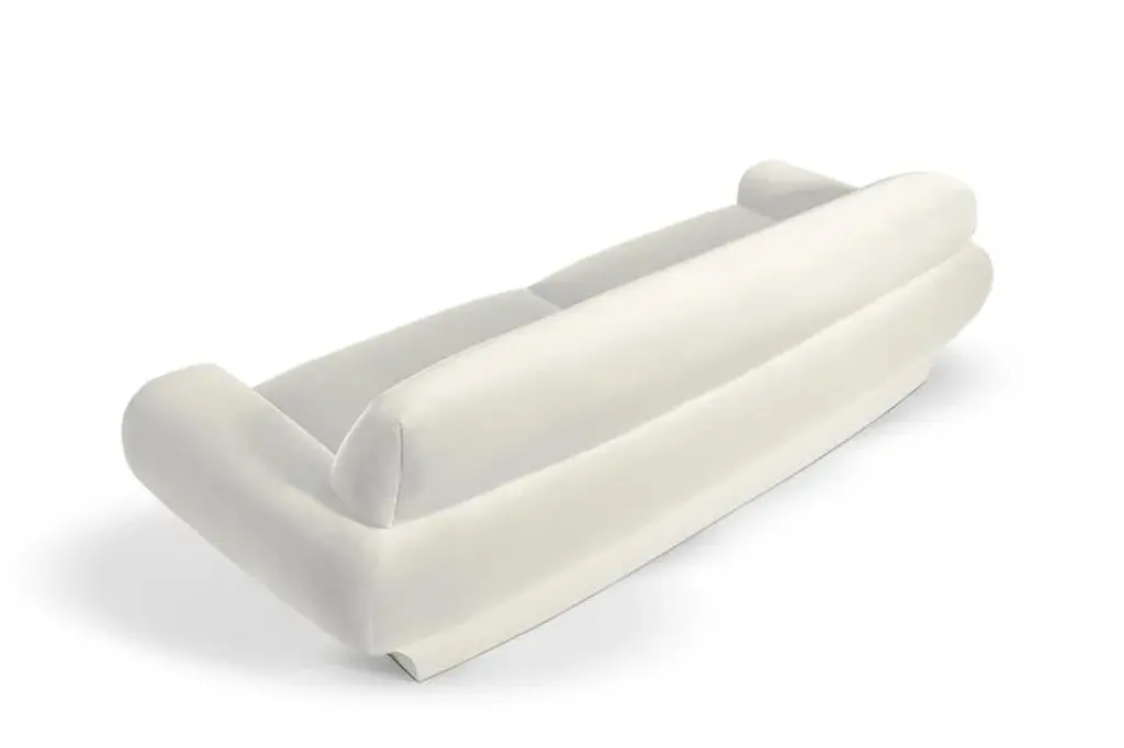 Roy 290 sofa by munna dimensions: d 115 x w 290 x h 83 cm. Sh: 42 cm. Materials: wood, foam, and upholstery. Finish: cotton velvet, ref. Chalk, cv33, and gloss lacquer.