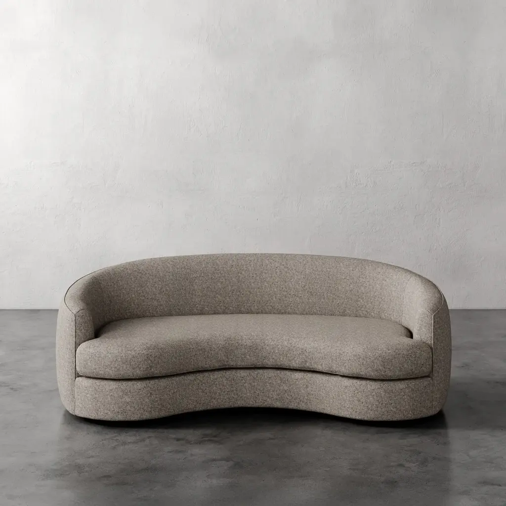Drawn from the ethos of mid-century organic modernism, the Rulmann Sofa embodies the curvilinear genius of Kagan, Royère, and Noguchi. Low-slung and materially grounded, its sculptural form nods to modular style, where anchored proportions hold space for modern design.Handcrafted by skilled artisans in North Carolina, the Rulmann sofa pays homage to traditional upholstery methods. Designed as a standalone artifact or to accompany other pieces in the Rulmann Collection