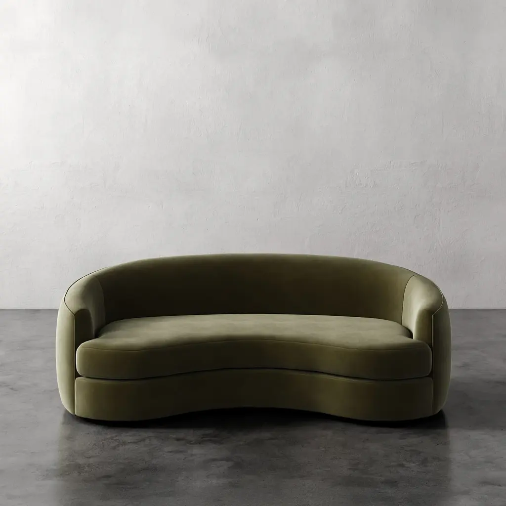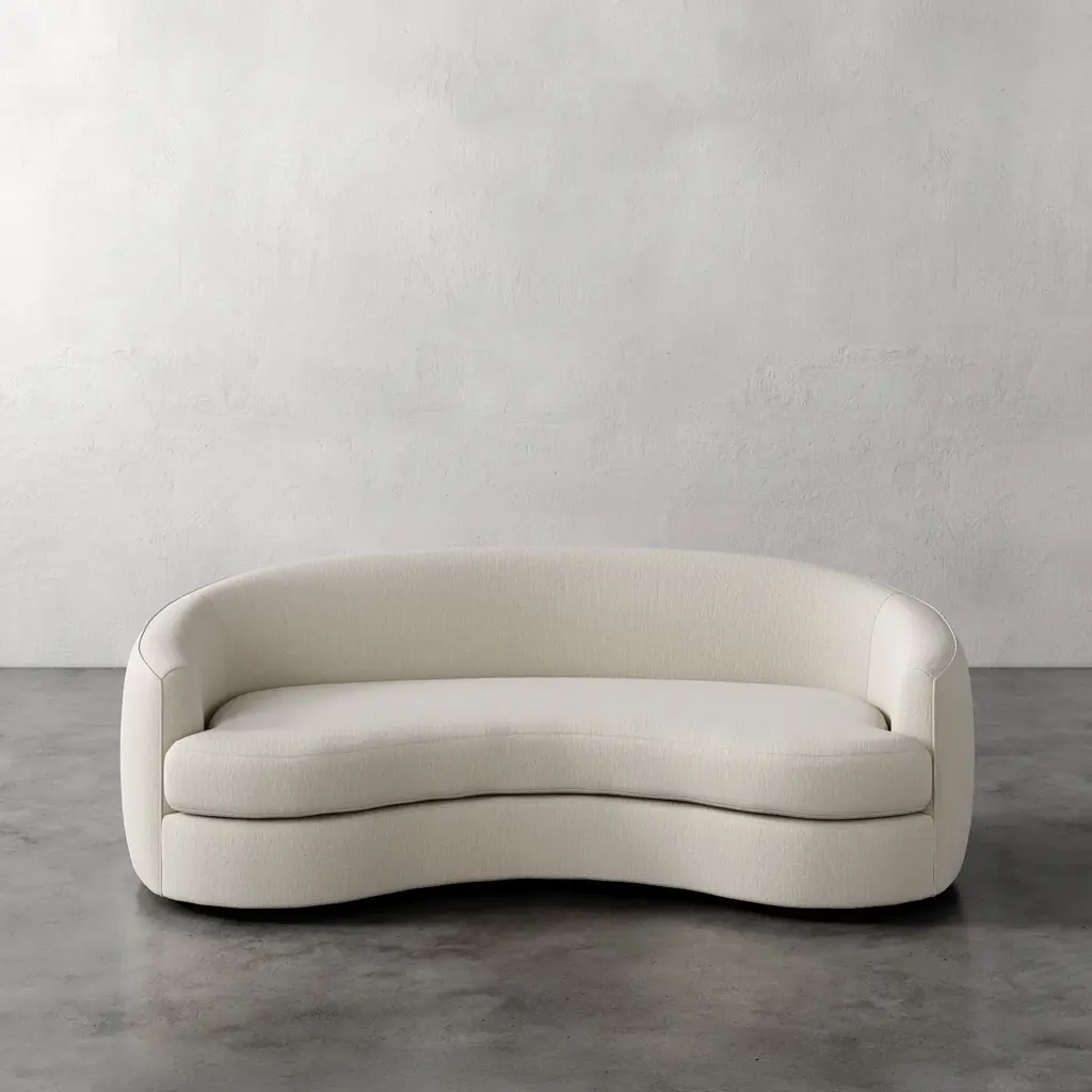 Drawn from the ethos of mid-century organic modernism, the Rulmann Sofa embodies the curvilinear genius of Kagan, Royère, and Noguchi. Low-slung and materially grounded, its sculptural form nods to modular style, where anchored proportions hold space for modern design.Handcrafted by skilled artisans in North Carolina, the Rulmann sofa pays homage to traditional upholstery methods. Designed as a standalone artifact or to accompany other pieces in the Rulmann Collection
