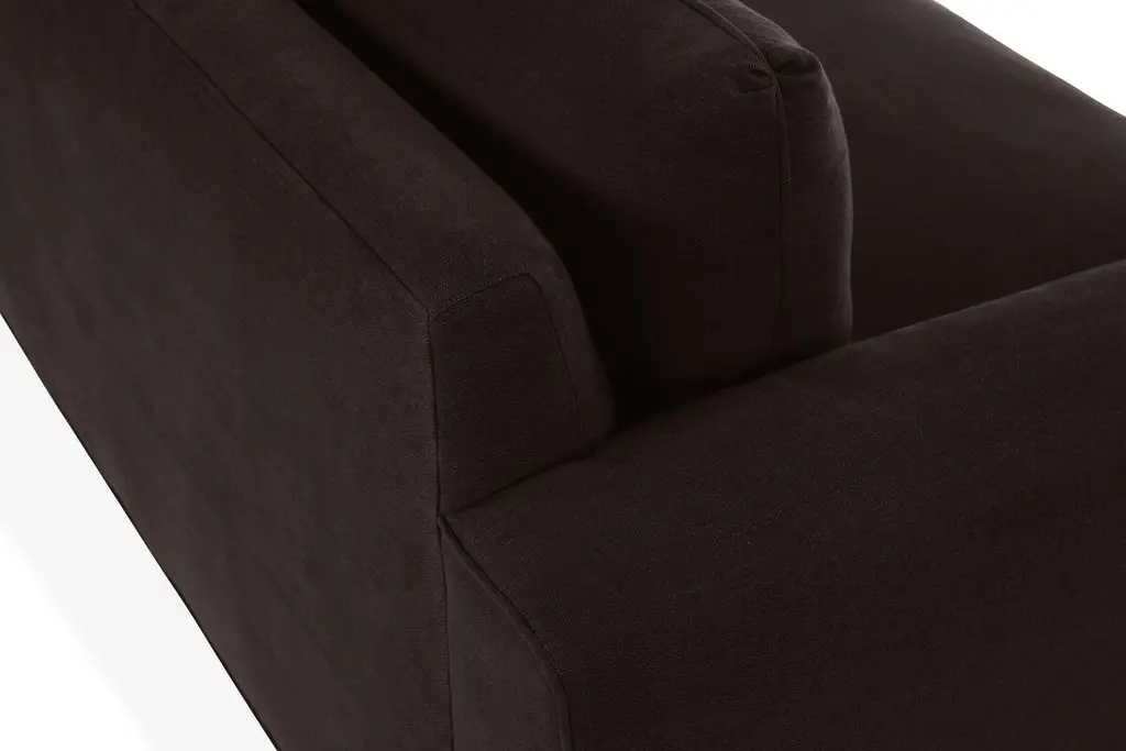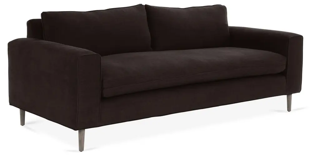 Designed by us and available only at One Kings Lane: Casual yet modern, this sofa is constructed with a sturdy alder frame topped with white linen upholstery and a cushy foam fill. We love how a single bench cushion and exposed alder legs contribute to the simplicity of the design. Made in the USA.