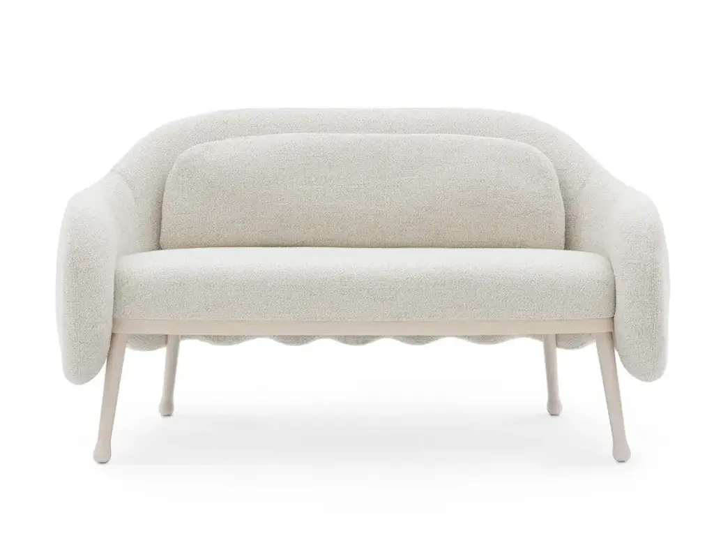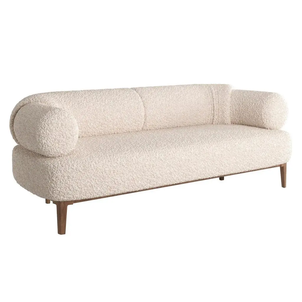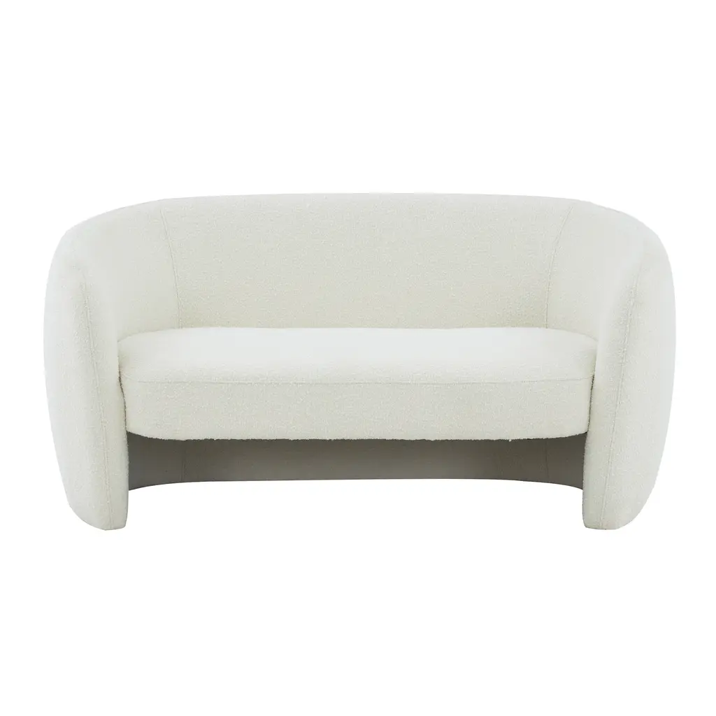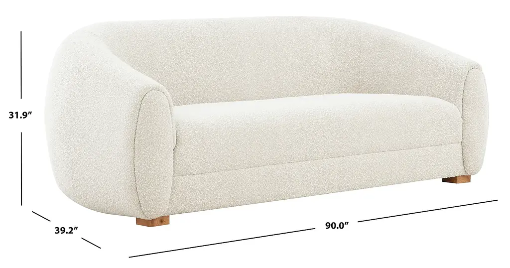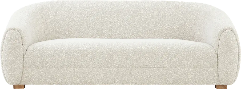 Glamorously minimalist, this Sabir ivory sofa is effortlessly fabulous. Sabir's contoured, encompassing silhouette is beautifully enhanced by the luxuriously intriguing texture of its ivory boucle upholstery, and its continuous cushion creates a streamlined look that's utterly cosmopolitan.
