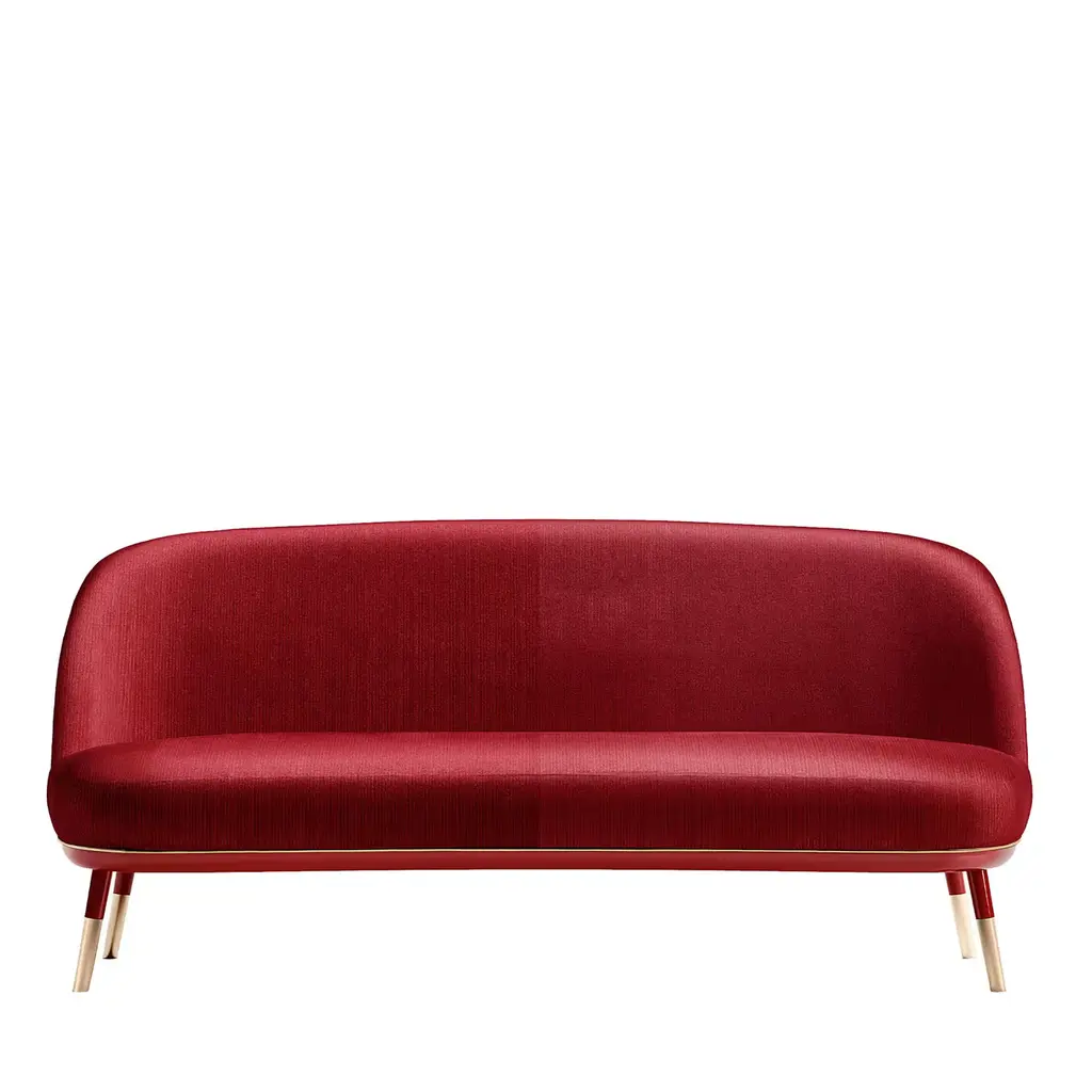 Luxurious in an understated way, this gorgeous sofa deserves center stage in any modern living room with its elegant curvaceous design upholstered in lustrous red fabric. A prestige piece for high-end office lobbies or living rooms, the Sabrina Sofa is perched atop a luxurious solid wood base with slanted legs boasting chrome-finished metal ferrules. Paired with the armchair of the same collection, this sofa works particularly well in contemporary or chic interior decors.