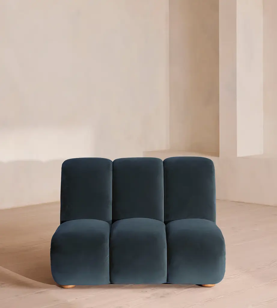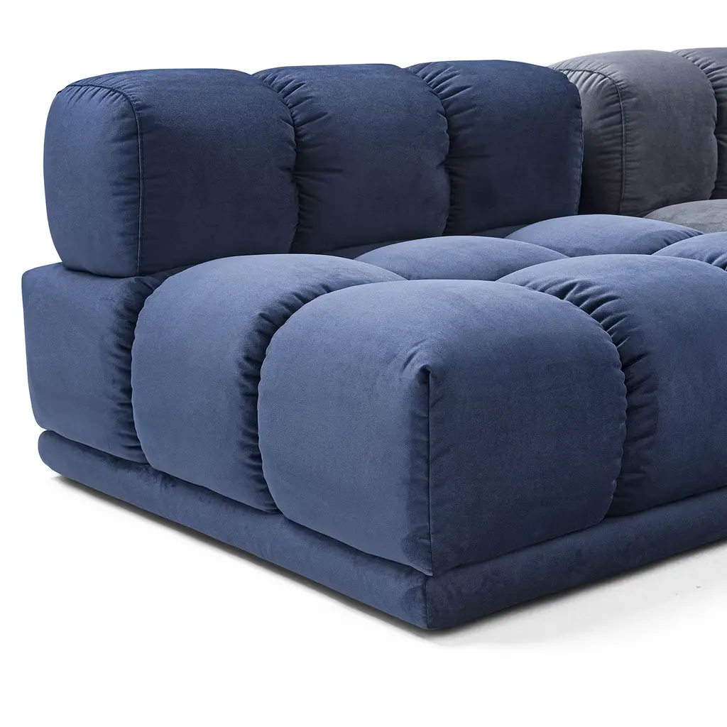 This modular sofa of modern inspiration was conceived with comfort and playfulness in mind. Its distinctive and extensive quilted look - crafted on the combination of soft blue and gray fabric cover - enhances its pop personality and stresses its unattainable plumpness owed to the rich memory foam padding. Please inquire with the Concierge for details and customizations.