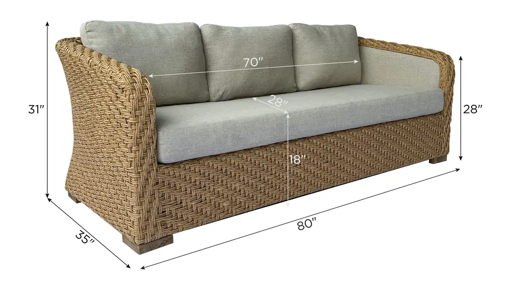 Enhance your outdoor living area with the stylish and comfortable Sahara Outdoor Wicker Sofa. Featuring a durable wicker exterior and a sturdy aluminum inner frame, it's built to endure a range of weather conditions while resisting fading and UV damage. The included oatmeal-colored cushions offer plush comfort with foam filling and removable covers for easy cleaning. Made from weather-resistant polyester, the cushion covers maintain their fresh look season after season. Convenient zipper closures make removing the covers quick and simple.