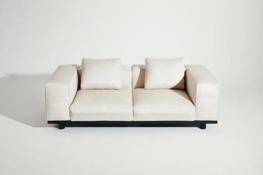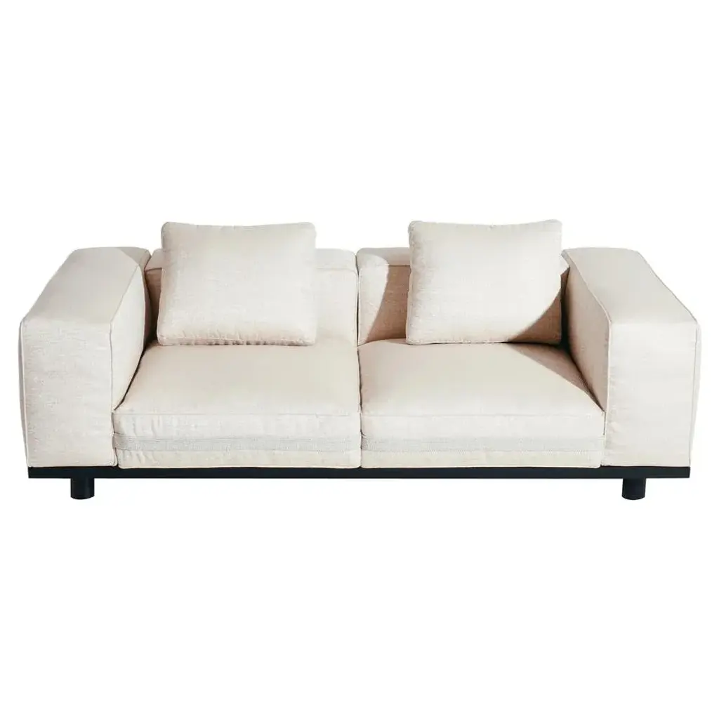 Outdoor saint-rémy sofa by luca nichetto. Dimensions: w 220 x d 110 x h 67 cm materials: black aluminium powder coated structure platform, black aluminium powder coated or dark beech solid wood legs, fabric or leather saint-rémy is an outdoor sofa designed to incorporate the least number of elements possible, each with several possible uses for a decidedly modular product. Variations in cushion shapes are kept to a minimum to promote adaptability, allowing for instance a back cushion to pivot and be used as an armrest. The bolster-shaped cylindrical cushions are a reference to the familiar vocabulary of la manufacture’s luizet sofa. this piece is attributed to the mentioned designer/maker. It has no attribution mark and no official proof of authenticity, however it is well documented in design history. I take full responsibility for any authenticity issues arising from misattribution