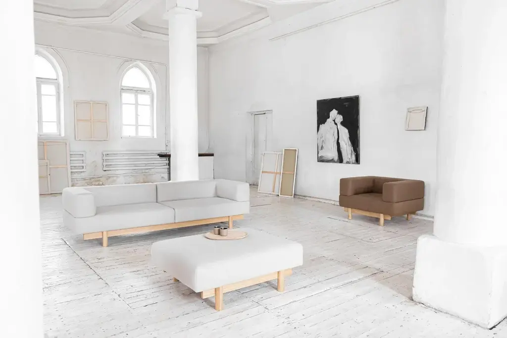 Introducing the Alchemist collection - a series of sophisticated sofas, armchairs and poufs, that exude timeless elegance. Melding modernist design with traditional Japanese structures, this collection is a masterpiece of balance and proportion, boasting clean lines that are both minimal and refined. Crafted with meticulous attention to detail, the soft pillows of the Alchemist are sculpted to perfection, seamlessly sitting on an oak-veneered frame. The structure of the sofa is characterized by sharp, well-defined lines that run along all sides, creating a welcoming and visually stunning piece from every angle. In any room it graces, the Alchemist's composed posture radiates a sense of calm and comfort, offering a perfect retreat for relaxation and rejuvenation. This collection is a true work of art, seamlessly blending style and comfort into a statement piece that will elevate any space. Labeled by Maker