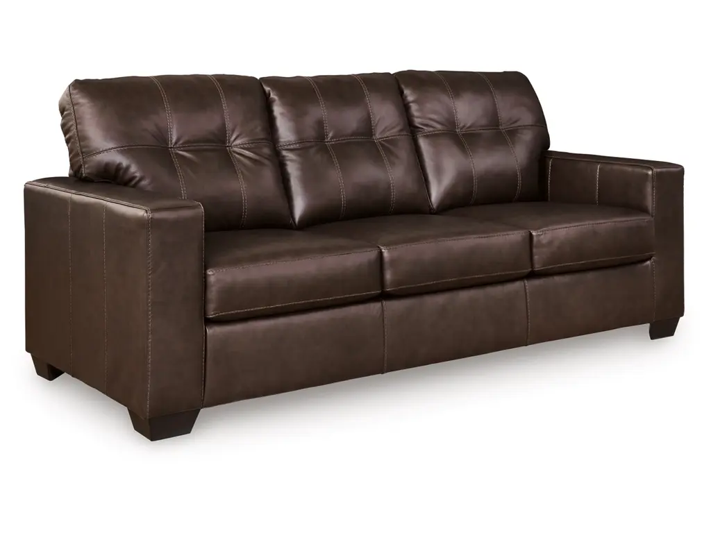 Whether your inspiration is contemporary or classic, the Santorine sofa's good looks and affordable luxury are hard to deny. Its clean-lined silhouette and skillfully matched leather and faux leather upholstery offer a transitional sensibility that's right at home in your home. And the ample cushions with tufted details invite you to relax in comfort.
