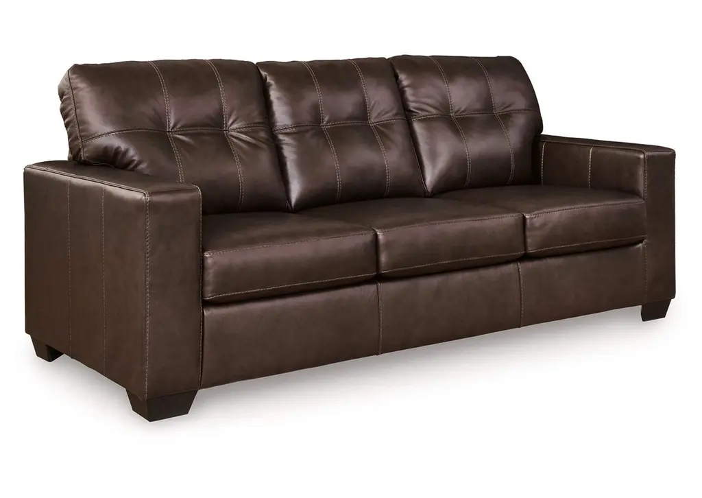 Whether your inspiration is contemporary or classic, the Santorine sofa's good looks and affordable luxury are hard to deny. Its clean-lined silhouette and skillfully matched leather and faux leather upholstery offer a transitional sensibility that's right at home in your home. And the ample cushions with tufted details invite you to relax in comfort. Weight 135.000 lbs. (60.75kgs.)