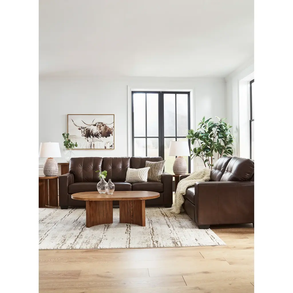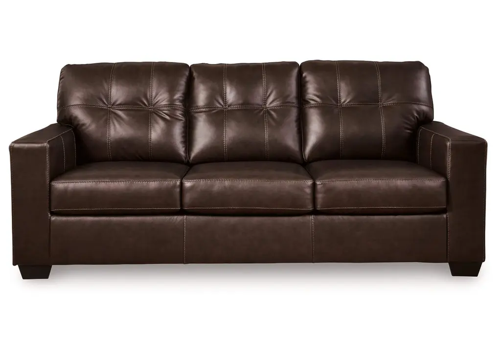 Whether your inspiration is contemporary or classic, this sofa's good looks and affordable luxury are hard to deny. Its clean-lined silhouette and skillfully matched leather and faux leather upholstery offer a transitional sensibility that's right at home in your home. And the ample cushions with tufted details invite you to relax in comfort. - Product Details provided by Manufacturer, Slumberland not responsible for errors in information.