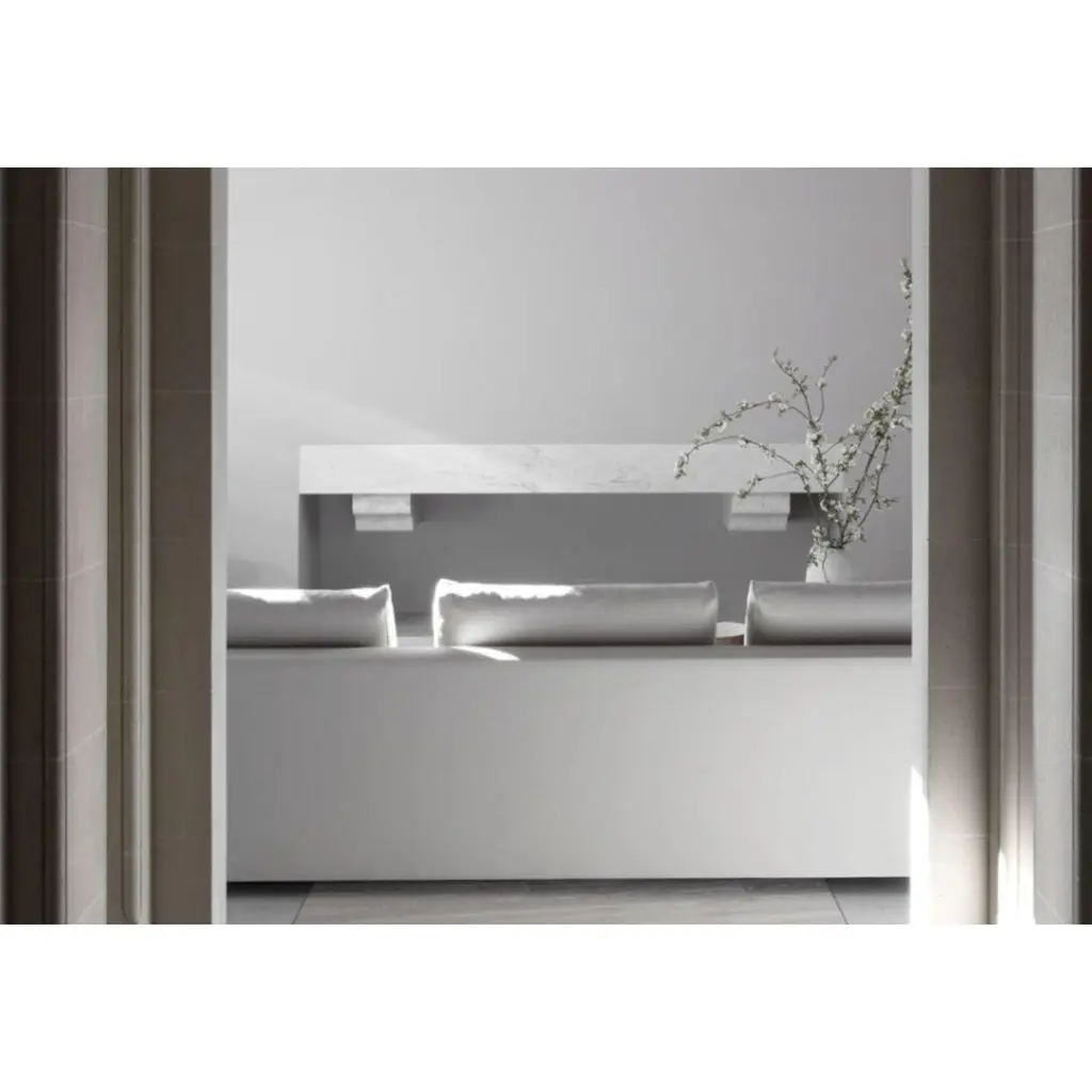 Satin sofa by Guillaume AlanDimensions: D 105 x W 350 cm x H 65 cmMaterials: Fabric from Guillaume Alan collectionFrench interior design has taken many forms over the centuries from the revered Louis XV era to India Mahdavi’s colourful worlds of whimsy, but, whatever the look, French interiors have always represented beauty and grace, quality and craftsmanship. That’s certainly true for Guillaume Alan—the Paris and London-based interior and furniture designer who continually impresses with his minimalist aesthetic.