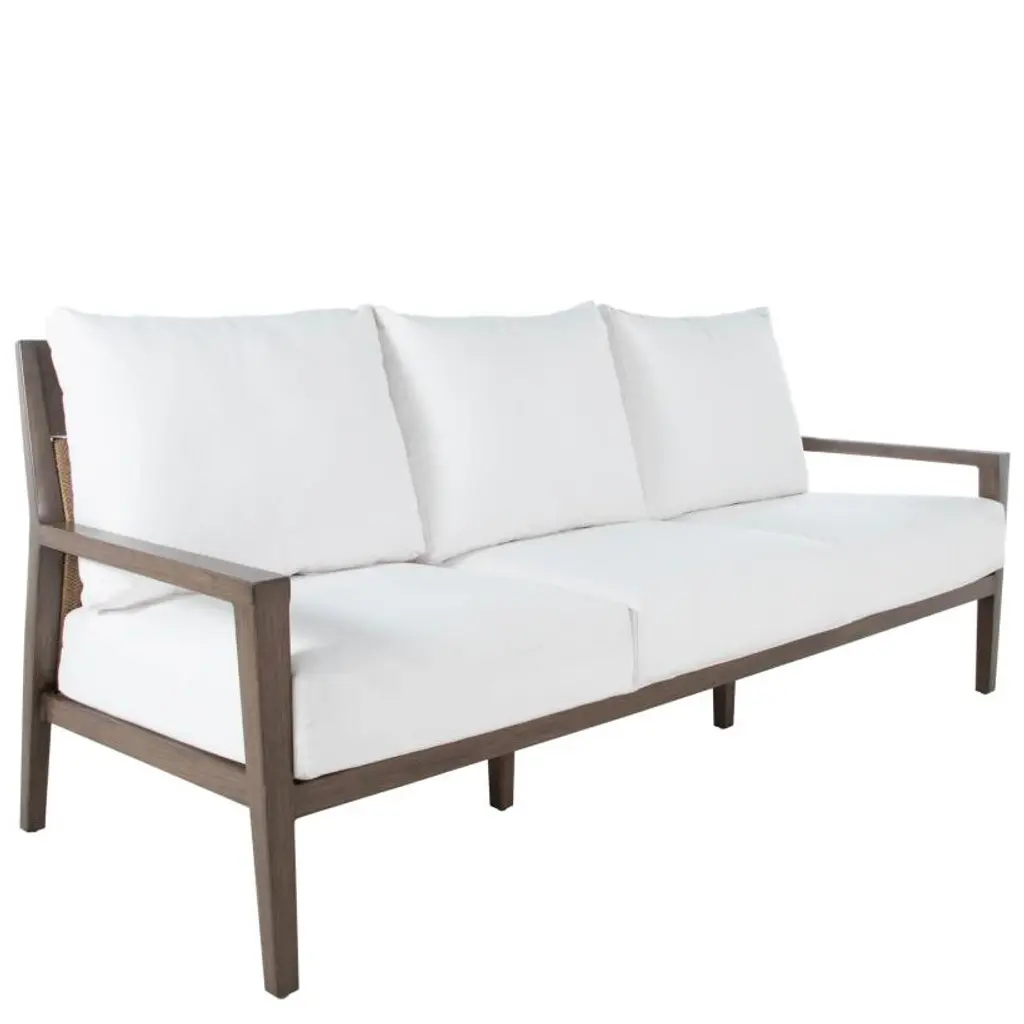 The Savannah Aluminum Sofa blends coastal elegance with mid-century sophistication, featuring tapered legs and an extended back for a unique silhouette. Handcrafted with chevron-patterned N-Dura™ resin wicker and durable, saltwater-resistant aluminum frames, this sofa offers unmatched durability and UV protection. Ideal for those who prioritize style and longevity, this collection redefines outdoor luxury with its perfect blend of timeless design and modern durability. Our exclusive N-Dura™ Ultra Resin Wicker sets our outdoor furniture apart with unmatched durability and UV protection in the industry.