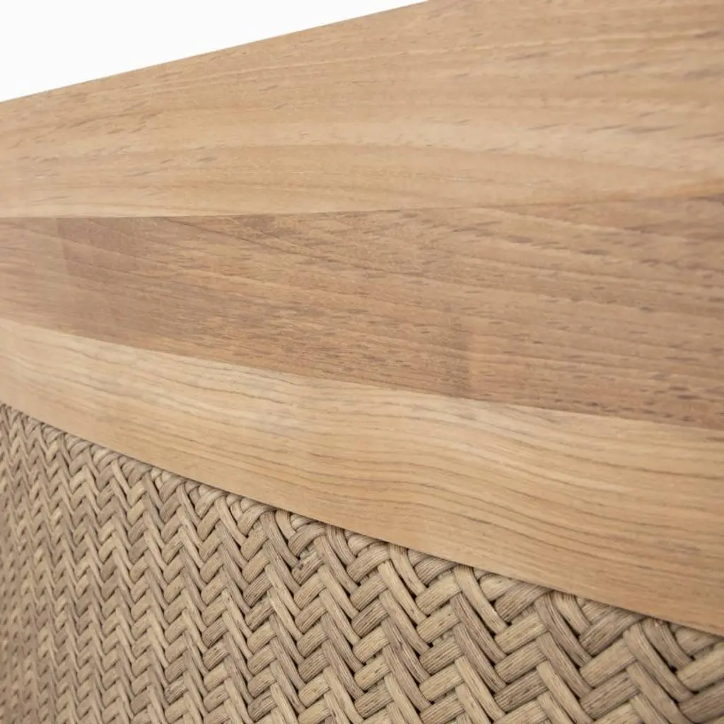 Our Savannah Teak Collection is where the warmth of natural teak meets the resilience of N-Dura™ resin wicker. This Savannah Sofa is sculpted for those who appreciate the timeless beauty of teak, enhanced with UV-resistant wicker for enduring allure. Each handcrafted piece adds a layer of exclusivity and unparalleled quality. Perfect for outdoor sanctuaries, it combines the organic charm of wood with modern durability, offering a sanctuary of style and tranquility that stands the test of time. Please note, that due to its high-quality center cut, and natural oils, teak will age gracefully without the help of cleaners and protectors. Our exclusive N-Dura™ Ultra Resin Wicker sets our outdoor furniture apart with unmatched durability and UV protection in the industry.