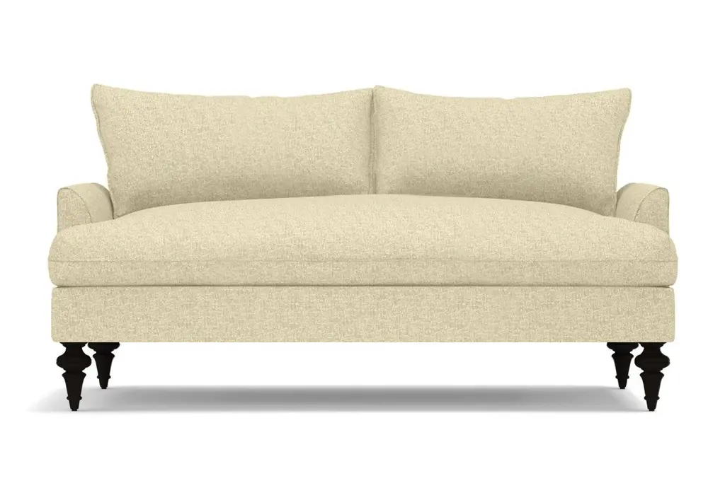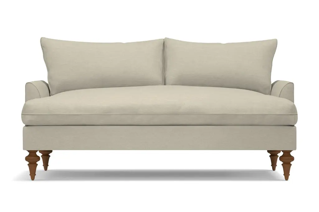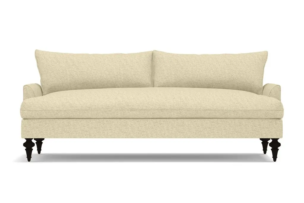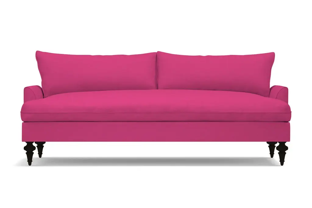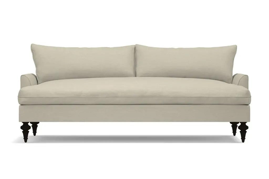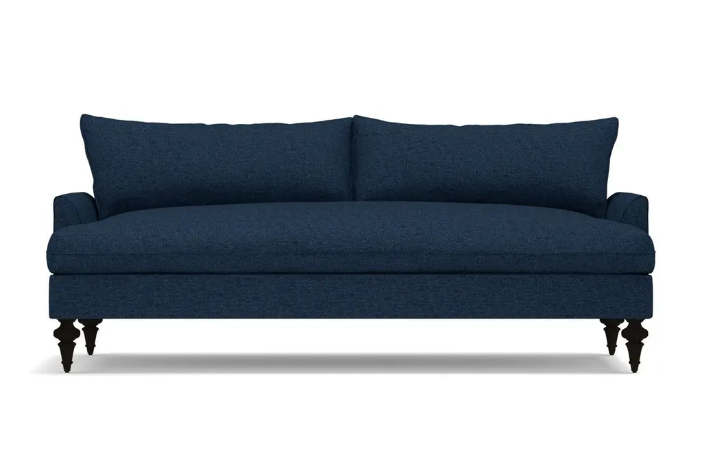 Straight out of the late Roman Empire, it's the Saxon Sofa! Okay, so it's not that old, but this transitional sofa design by Kyle Schuneman will feel like it's always been a part of your home. Based on the shabby chic motif - though we prefer "well-loved chic" - the Saxon has a deep seat with ultra-plush down cushioning to settle in for a quiet evening. The knife's edge trim and Victorian legs give it an additional sharpness, and the solid Alderwood frame will last until it really is an antique. Nearly 30 custom fabric colors are available, and if you can't decide from your computer which one you like best, we'll send you some free swatches to try out in your home. When you finally do order the U.S.-made Saxon Sofa, we'll deliver it right to your home as well. Get down with the Saxon! No, literally- this transitional sofa collection that brings a modern twist to shabby chic features ultra-plush down seat cushioning, making it our coziest sofa collection to date! A deep bench seat great for curling up and a classic turned leg highlight the high end design. And, it's framed by a very cool knife's edge trim on both the seat and back cushions (it's called a flange. Yeah we said it!).