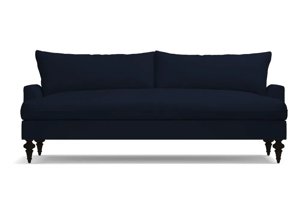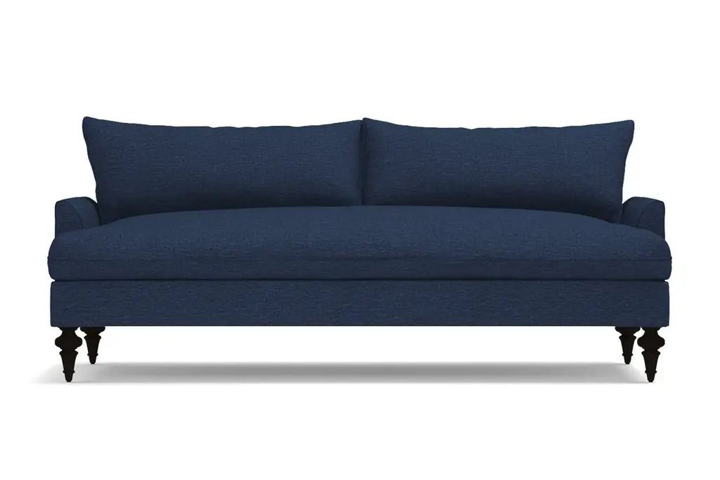 Straight out of the late Roman Empire, it's the Saxon Sofa! Okay, so it's not that old, but this transitional sofa design by Kyle Schuneman will feel like it's always been a part of your home. Based on the shabby chic motif - though we prefer "well-loved chic" - the Saxon has a deep seat with ultra-plush down cushioning to settle in for a quiet evening. The knife's edge trim and Victorian legs give it an additional sharpness, and the solid Alderwood frame will last until it really is an antique. Nearly 30 custom fabric colors are available, and if you can't decide from your computer which one you like best, we'll send you some free swatches to try out in your home. When you finally do order the U.S.-made Saxon Sofa, we'll deliver it right to your home as well. Get down with the Saxon! No, literally- this transitional sofa collection that brings a modern twist to shabby chic features ultra-plush down seat cushioning, making it our coziest sofa collection to date! A deep bench seat great for curling up and a classic turned leg highlight the high end design. And, it's framed by a very cool knife's edge trim on both the seat and back cushions (it's called a flange. Yeah we said it!).