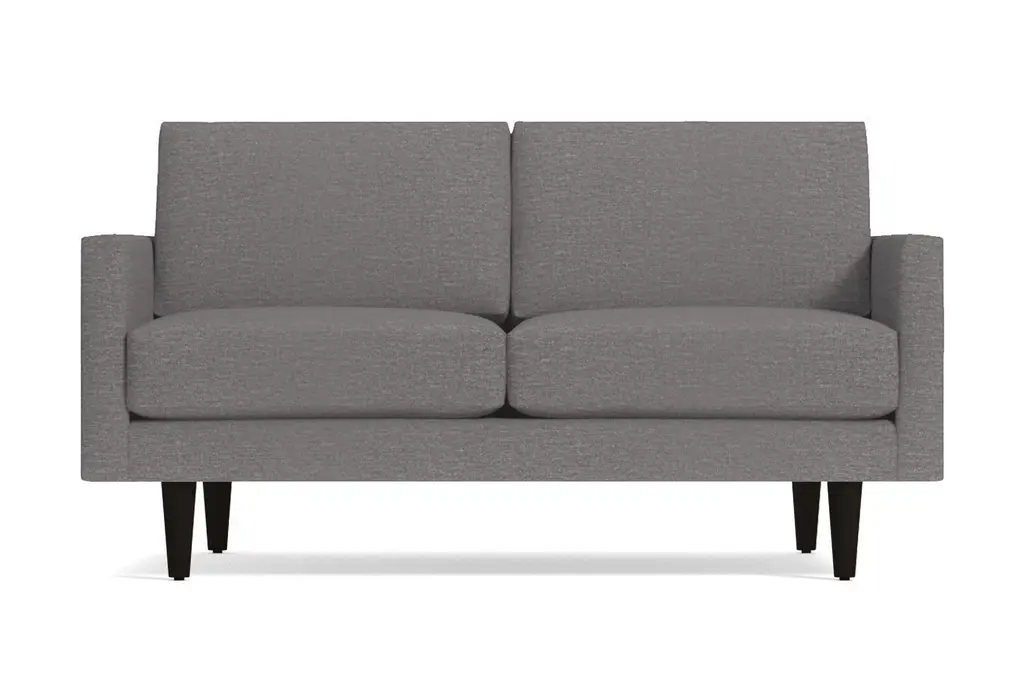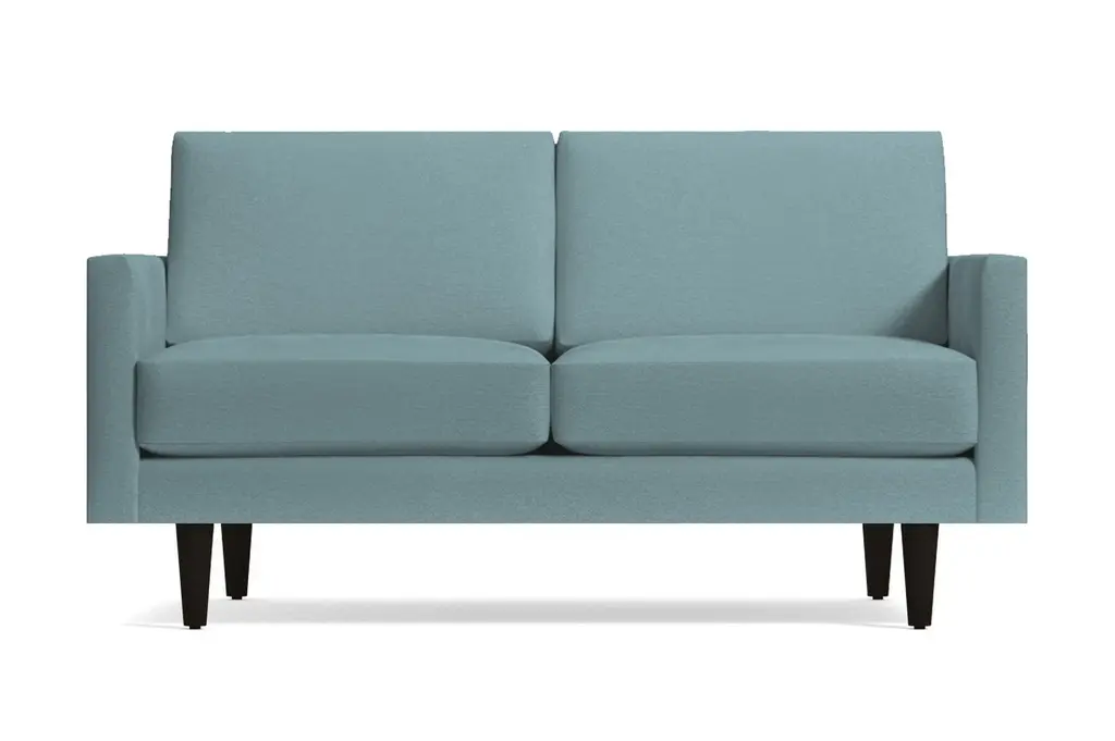 Great Scott this is one good-looking sofa! The Scott Apartment Size Sofa from Kyle Schuneman is quintessentially mid-century modern with slim track arms, sleek lines, sharp edges and tapered legs. This design works wonders in a modern loft apartment mixed with other mid-century and contemporary pieces. Available in two sizes, the loveseat - 56"w x 37"d x 31"h - fits nicely in a room with limited floor space. Available in a spectrum of colors, you can go as safe or as wild as you dare with your choice of hue. In addition to its physical attributes, the Scott sofa features an eco-friendly construction made from 100 percent alder wood, has a durable elastic webbing support system and is custom made in California.