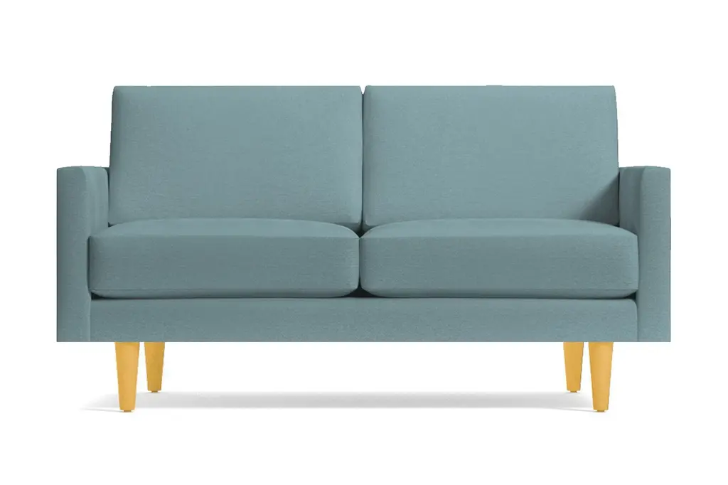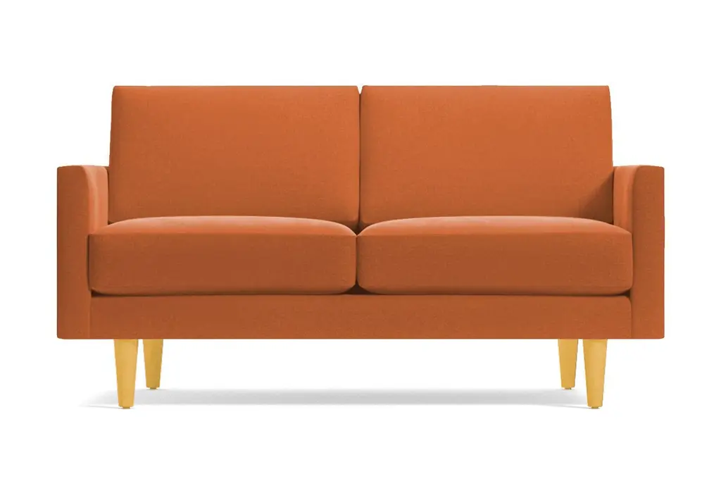 Great Scott this is one good-looking sofa! The Scott Apartment Size Sofa from Kyle Schuneman is quintessentially mid-century modern with slim track arms, sleek lines, sharp edges and tapered legs. This design works wonders in a modern loft apartment mixed with other mid-century and contemporary pieces. Available in two sizes, the loveseat - 56"w x 37"d x 31"h - fits nicely in a room with limited floor space. Available in a spectrum of colors, you can go as safe or as wild as you dare with your choice of hue. In addition to its physical attributes, the Scott sofa features an eco-friendly construction made from 100 percent alder wood, has a durable elastic webbing support system and is custom made in California.
