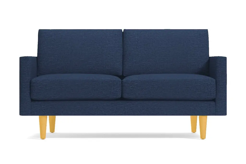 Great Scott this is one good-looking sofa! The Scott Apartment Size Sofa from Kyle Schuneman is quintessentially mid-century modern with slim track arms, sleek lines, sharp edges and tapered legs. This design works wonders in a modern loft apartment mixed with other mid-century and contemporary pieces. Available in two sizes, the loveseat - 56"w x 37"d x 31"h - fits nicely in a room with limited floor space. Available in a spectrum of colors, you can go as safe or as wild as you dare with your choice of hue. In addition to its physical attributes, the Scott sofa features an eco-friendly construction made from 100 percent alder wood, has a durable elastic webbing support system and is custom made in California.