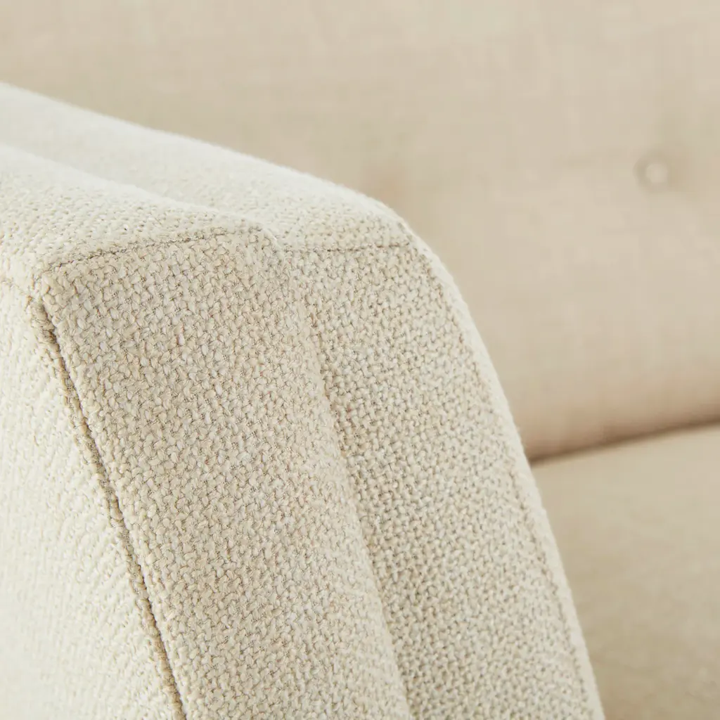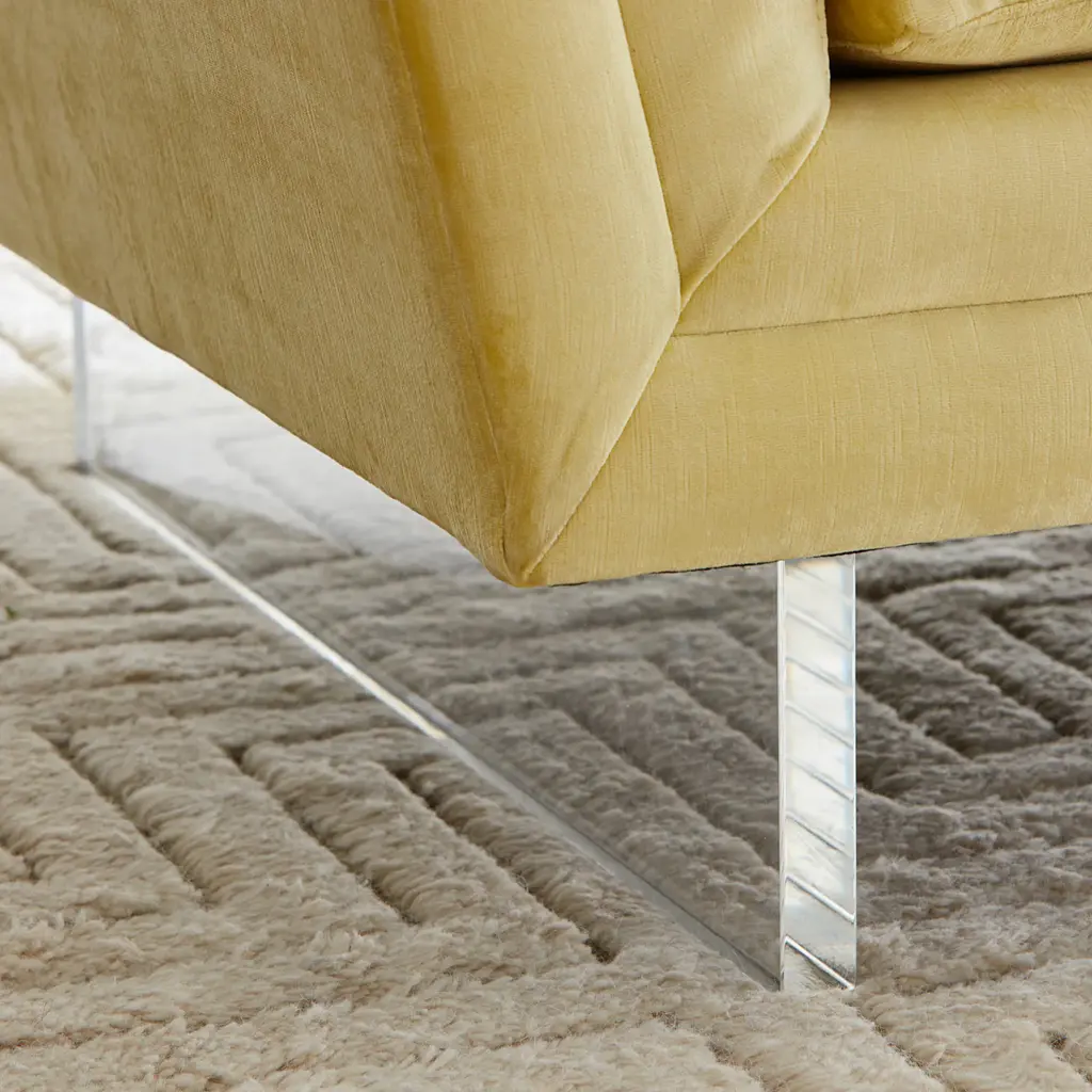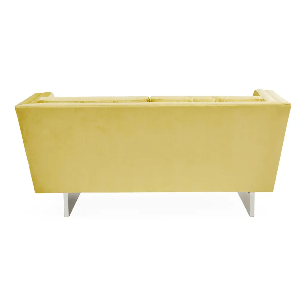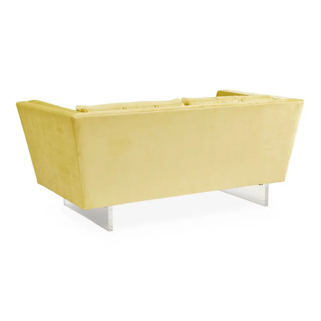Future Forward. Floating on luxe clear acrylic sleigh legs, Sebastian is our ultra modernist spin on the iconic Knole sofa. Luxuriously deep and cozy with its high, tuxedo back, flared arms, and inviting button-tufted back cushions. Sized for smaller spaces, our Sebastian apartment sofa will feel fabulously futuristic in your Malibu pad, or give that cozy room in your Kensington townhouse minimalist edge. Polished in Deluxe Linen or surprisingly neutral in Brussels Citron upholstery. Also available as a standard size sofa .