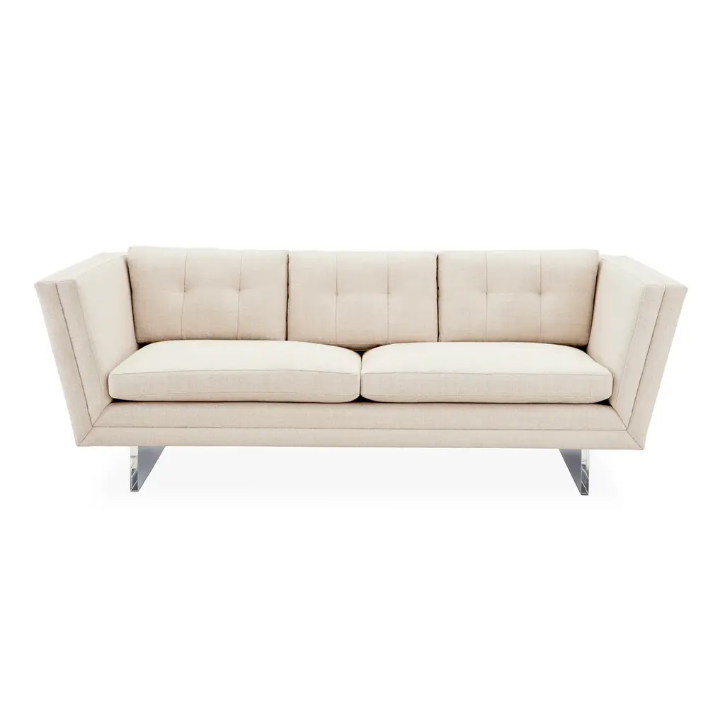 Future Forward. Floating on luxe clear acrylic sleigh legs, Sebastian is our ultra modernist spin on the iconic Knole sofa. Luxuriously deep and cozy with its high, tuxedo back, flared arms, and inviting button-tufted back cushions. Our Sebastian sofa will feel fabulously futuristic in your Malibu manse or give your Kensington townhouse minimalist edge. Also available as an apartment sofa.
