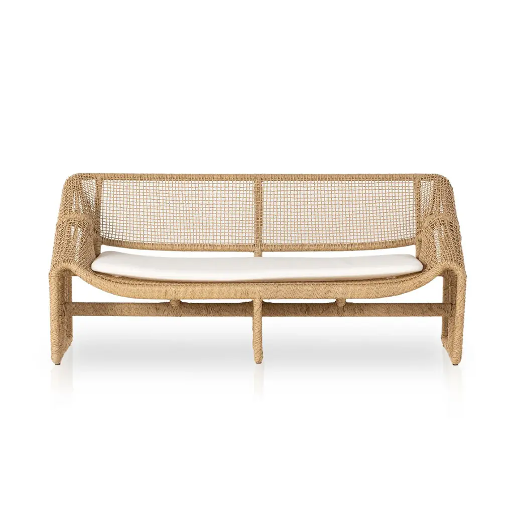 Great texture for the great outdoors in a sofa silhouette. Woven all-weather wicker forms a light, hyacinth-like frame for a durable seat cushion, spurring a grand, shapely look and feel. Cover or store indoors during inclement weather and when not in use. Ships In 10-14 Business Days All-weather cushion All-weather woven wicker frame This image is for illustrative purposes only. The colors shown are accurate within the constraints of lighting, photography, and the color accuracy of your screen.