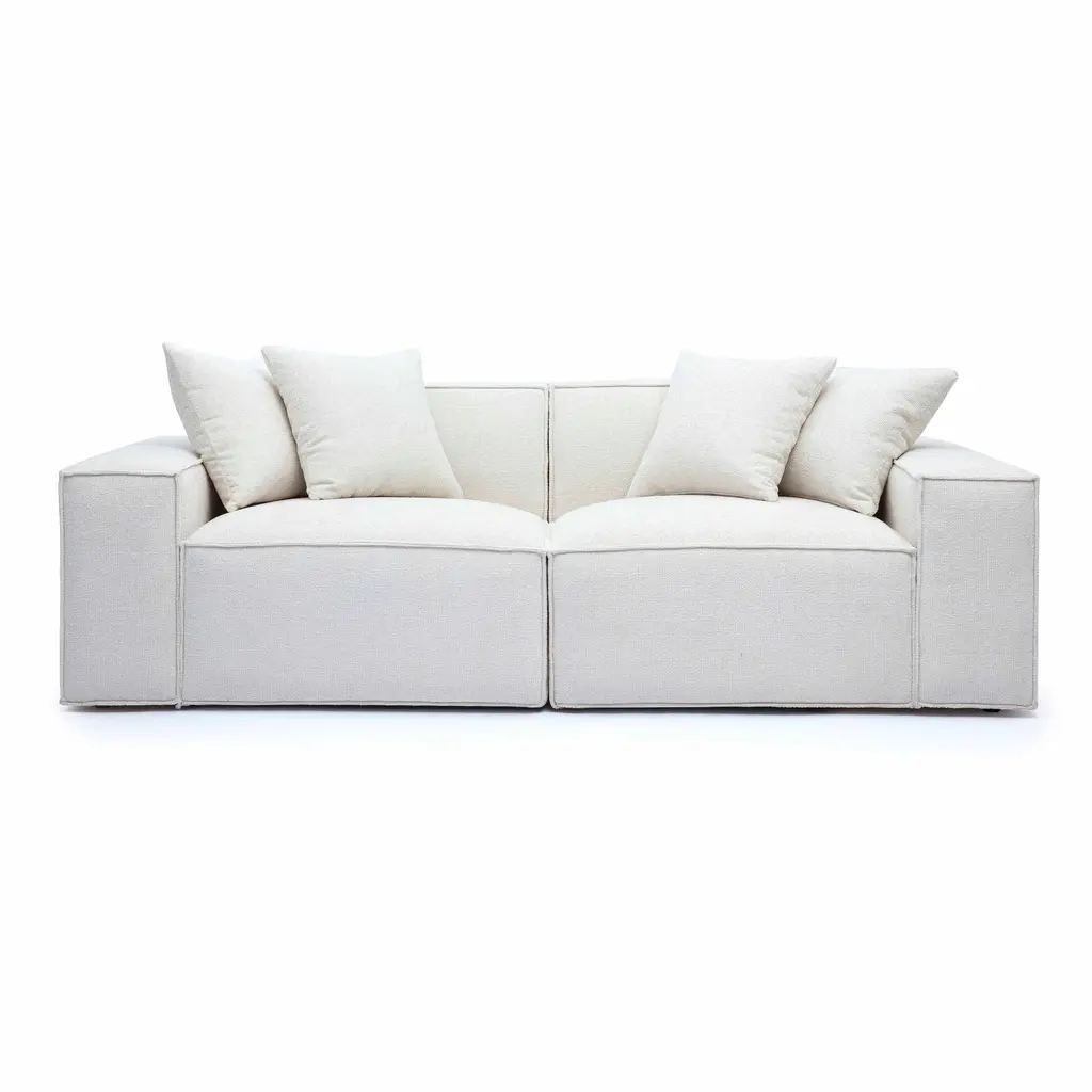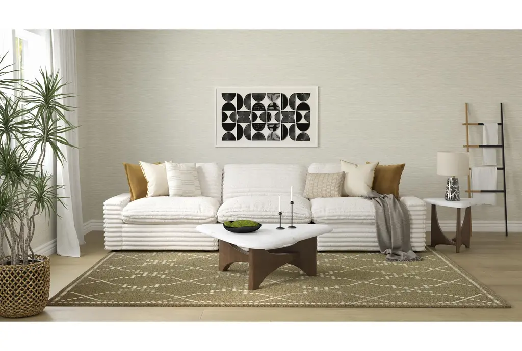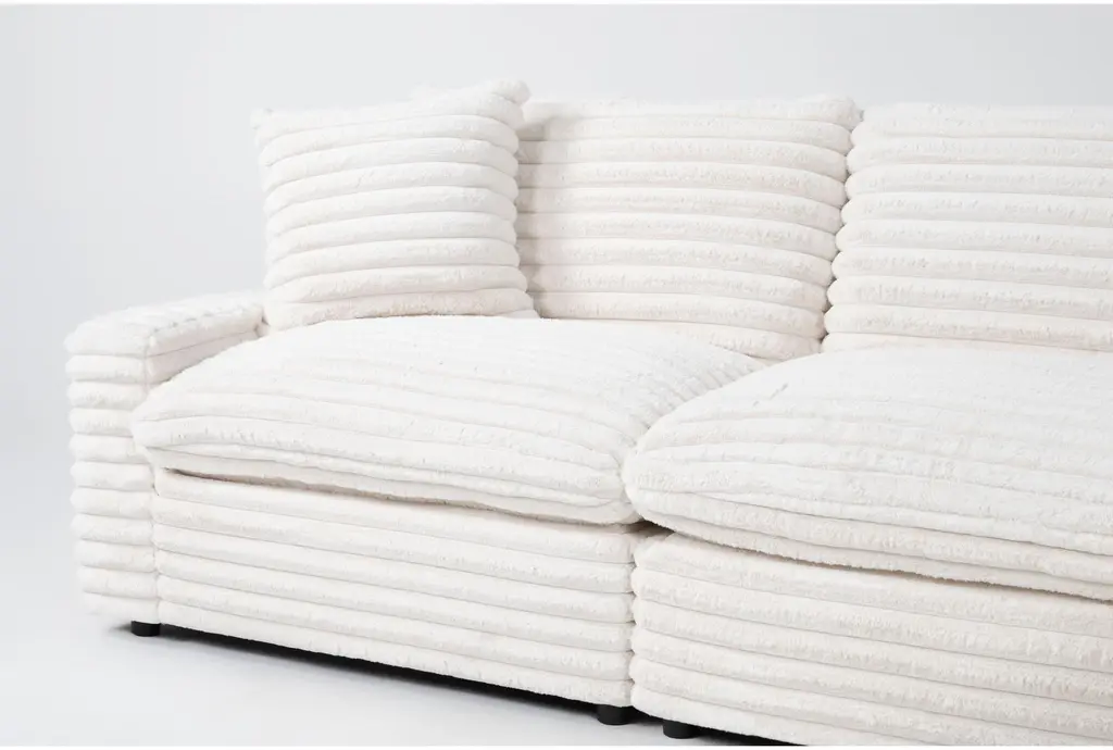 Introducing the Serenity Fluffy Cream Corduroy 146" Oversized Sofa, a perfect blend of casual style and comfort. This sofa, with its inviting cream corduroy fabric, is ideal for any living room setting. Its oversized design ensures ample seating space for family and guests, making it a must-have for your home.