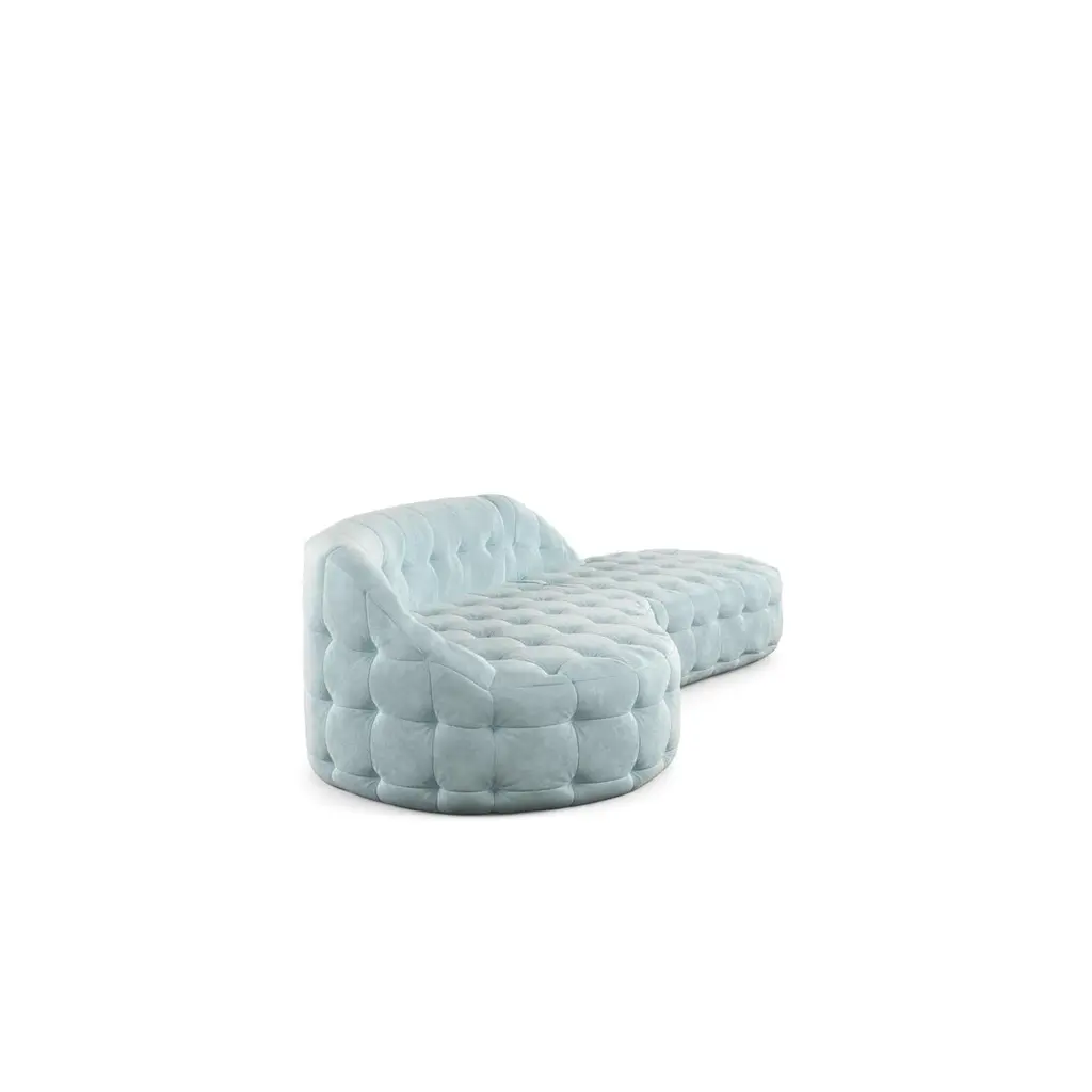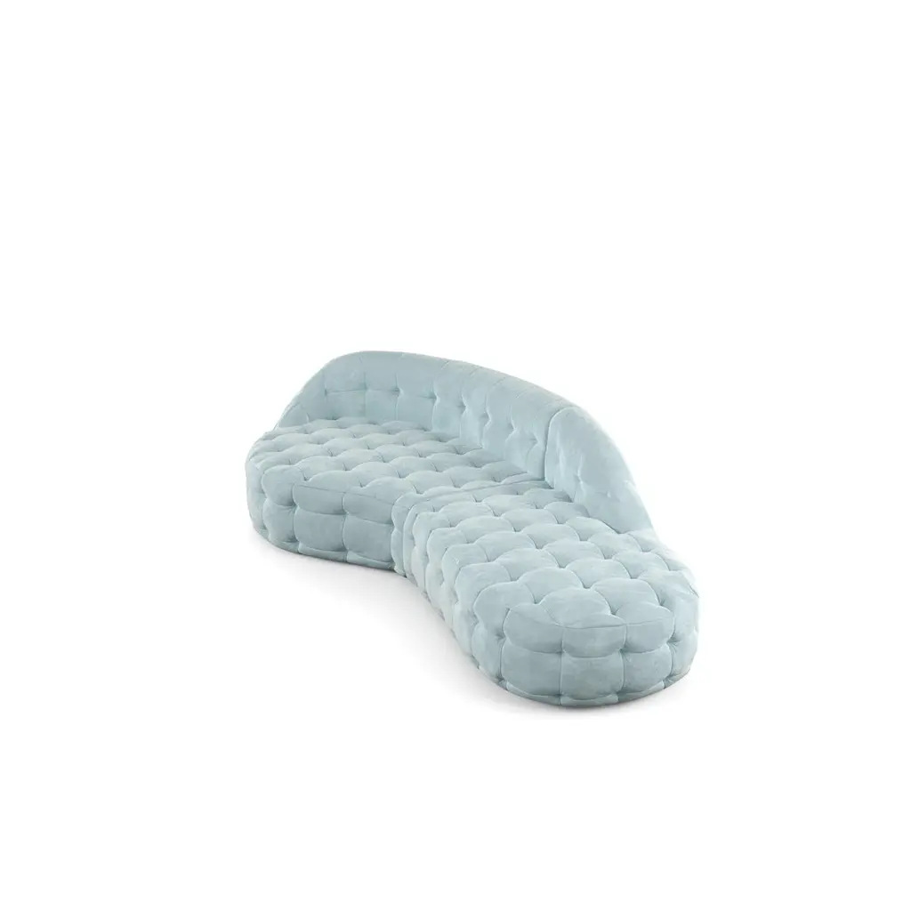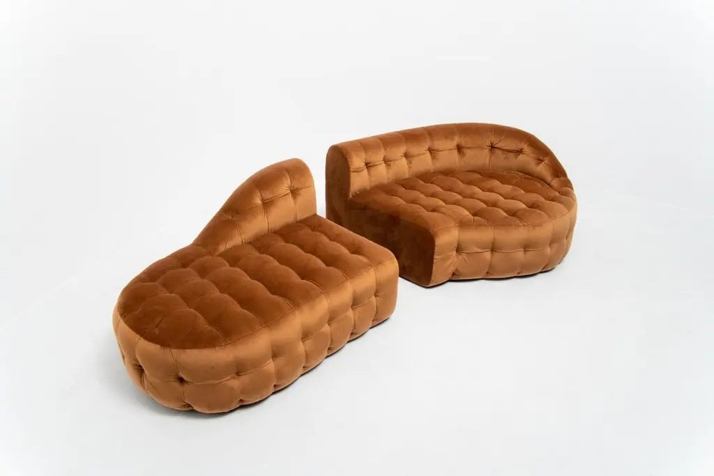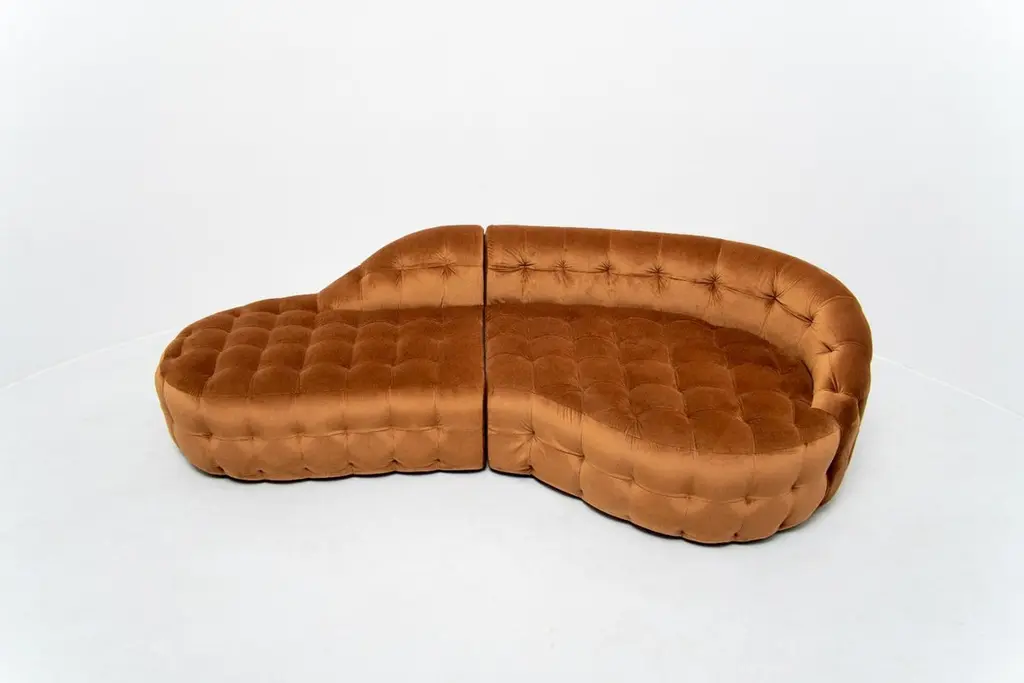 Serenity sofa tan, a tufted modular sofa with modules 6A and 2B adds glamour to interior spaces. It has a unique versatility of shape and size enhanced by rich velvet. How do you explore and feel a sense of calm at the same time.How do you combine and yet represent singularity in one form.The adventurer in Nika Zupanc led her to create serenity.It is more than a state of mind.It is at home, on a sofa that welcomes you.On an ottoman that suggests a day of calm and peace.It is in the leisurely walk between a cabinet and bed.It is in the joy of creation and the playfulness of recreation.Nika seeks inspiration and calmness in the landscapes that surround her. As youexplore the collection, you will discover the curved lines of her design approach.Resembling the intuitive movements and compositions of hills and forests.Every luxurious creation is a design classic. Only, it’s from the future.Care: Vacuum clean when required.Celebration of authenticity: Slight variations or imperfections are the marks of an artisan, a testament to the individuality, emotion and originality of each work of art. We assert our right to make meaningful qualitative changes.Please note: Prices do not include VAT. VAT may be applied depending on the ship-to location.