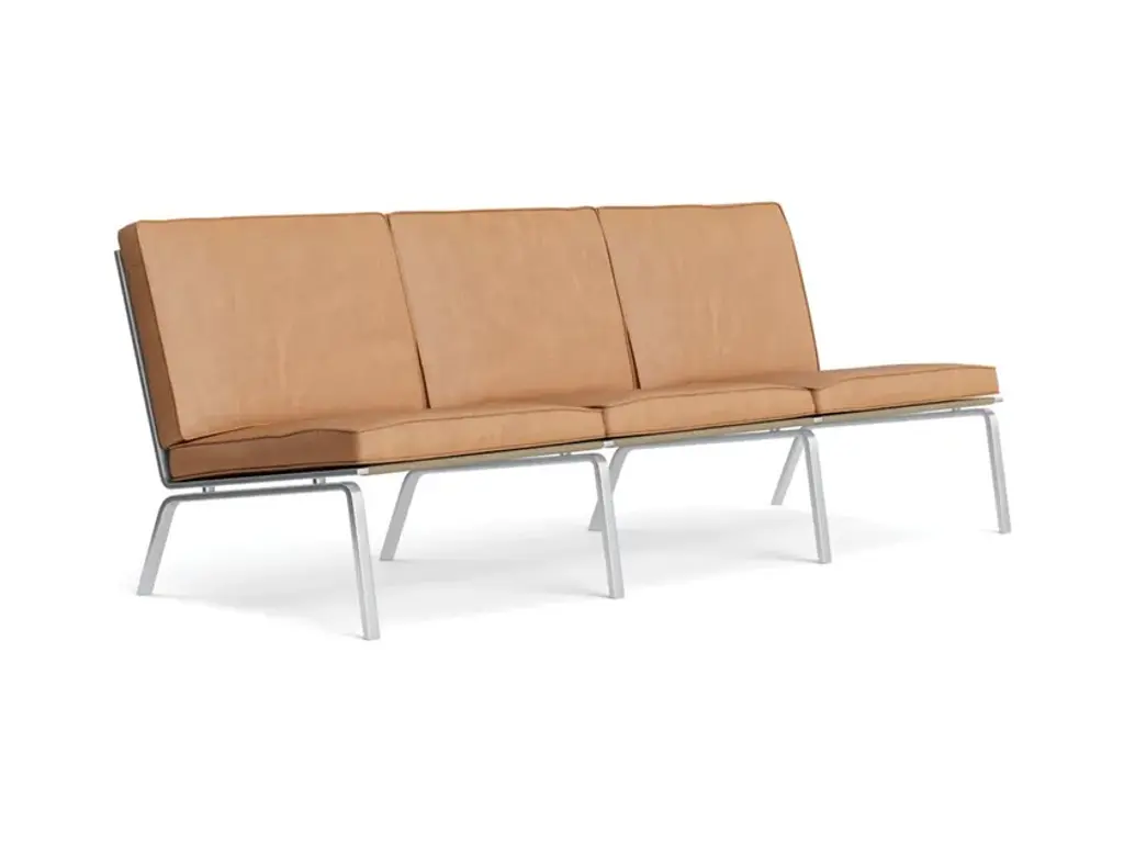 The 3300 series was created for the SAS Terminal at the Royal Hotel in Copenhagen, one of Arne Jacobsen's architectural masterpieces. In harmony with Jacobsen's architectural work at that time, the 3300 series is cool and formal. Furthermore, the 3300 series exudes Jacobsen's unfailing sense of line and proportion and his ability to design everlasting classics. Arne Jacobsen got the inspiration for the 3300 series from a sofa, which he had designed especially for his own home in the 1940s. The 3300 series forms an elegant contrast to the organic shapes of the Egg and Swan chairs, also designed especially for the Royal Hotel. The 3300 series consists of a 1-seater easy chair as well as a 2-seater and 3-seater sofa and is sublime for waiting and lounge areas as well as for private homes. The series 3300 is available in various types of leather and fabric upholstery and always with a chromed base.