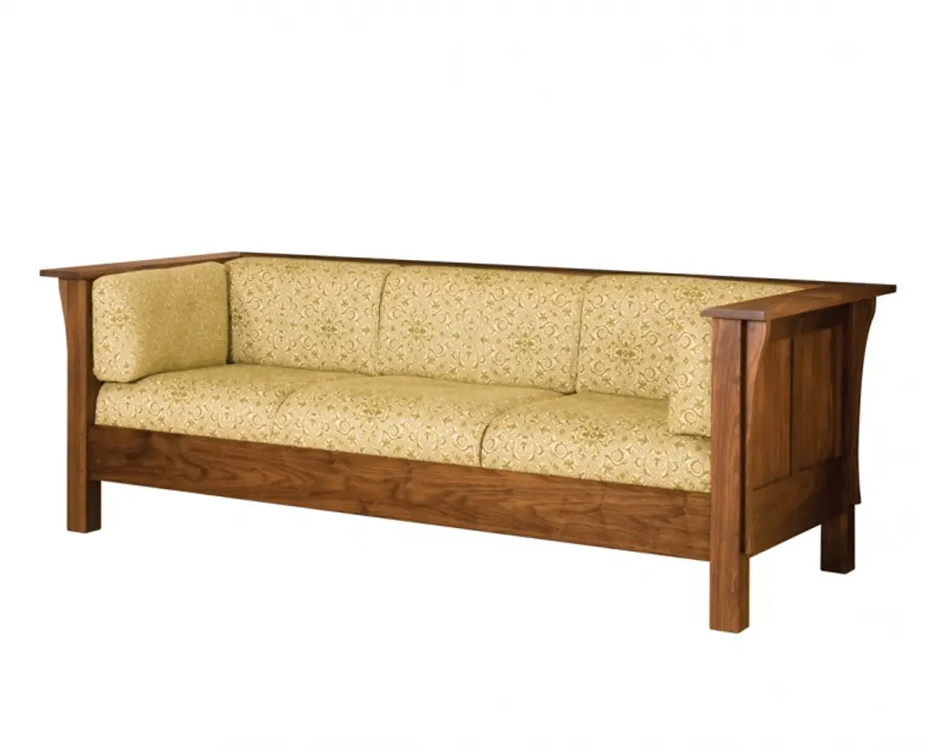Handcrafted in Portland, Oregon, the Settle Couch is made from solid hardwood and the design references traditional Mission furniture. It features beautifully matched boards in a frame and panel construction. Available in the selected fabrics online. For additional fabric and leather options or COM fabric, please contact us here.
