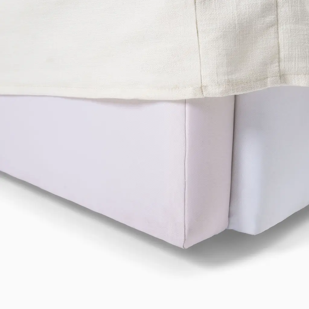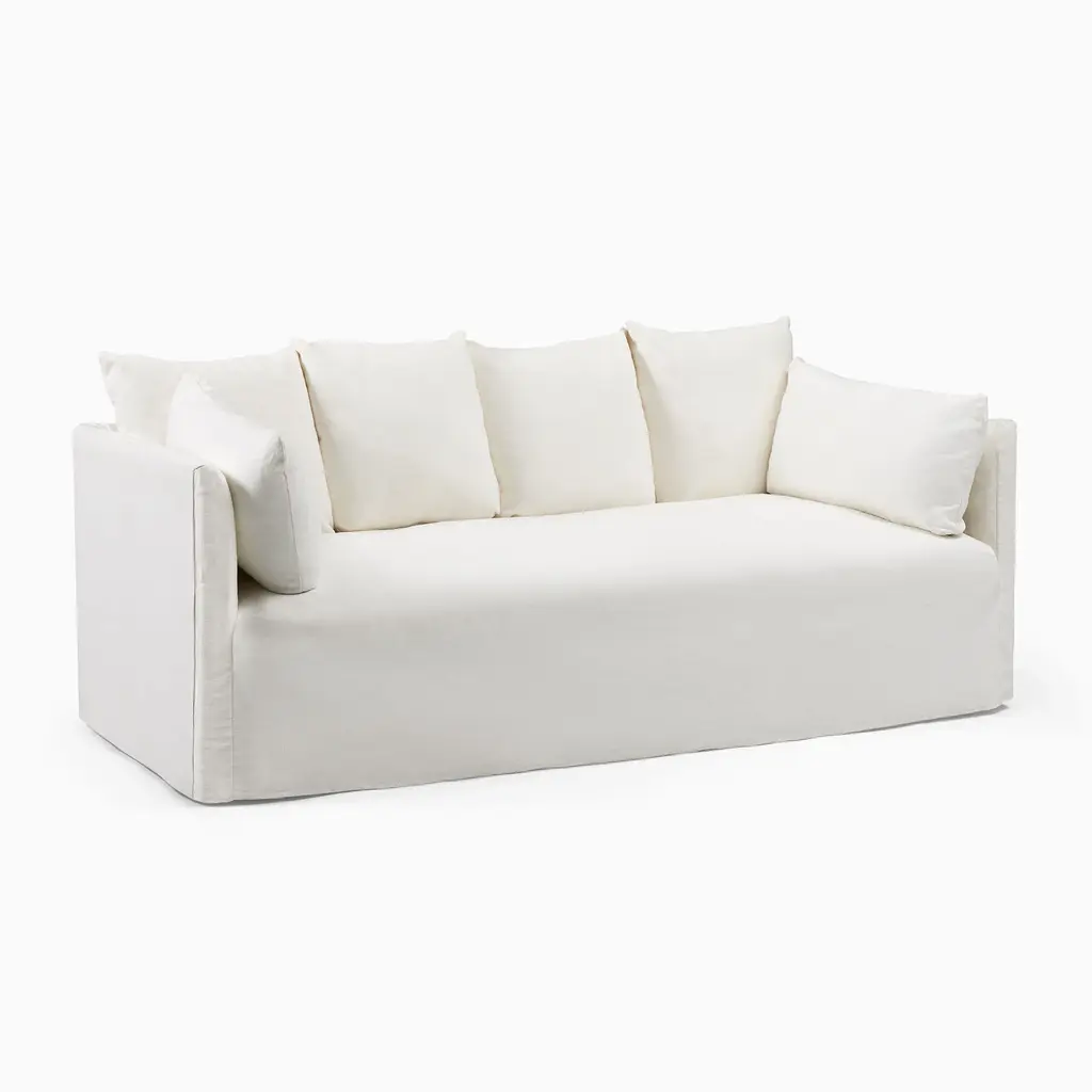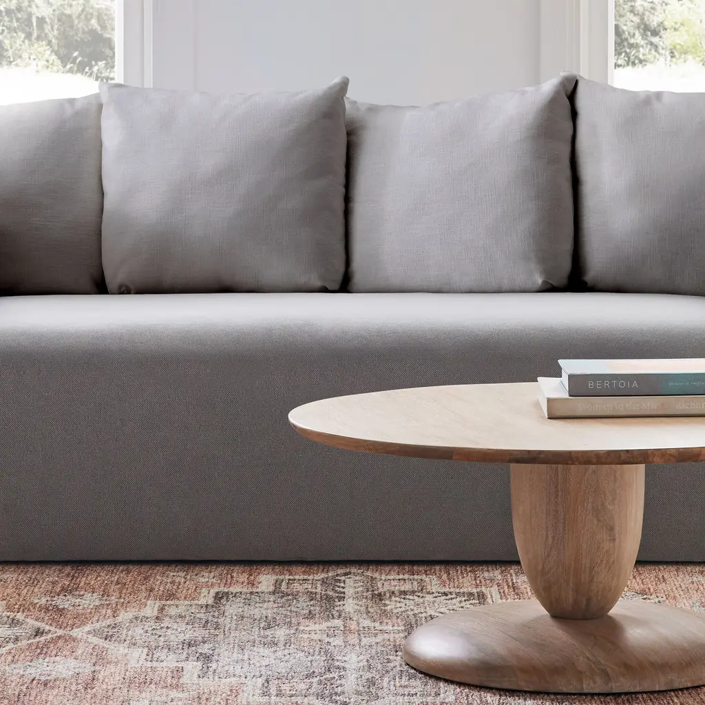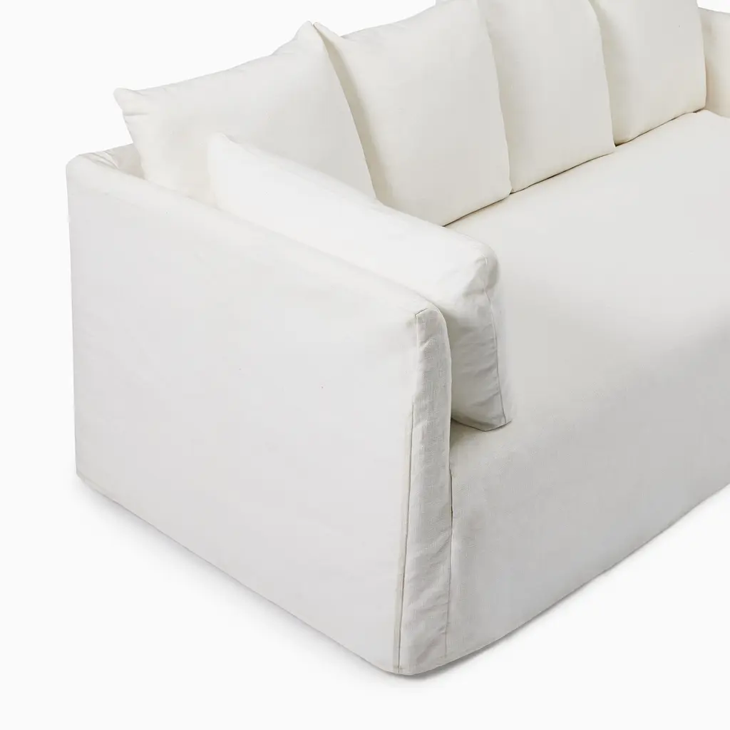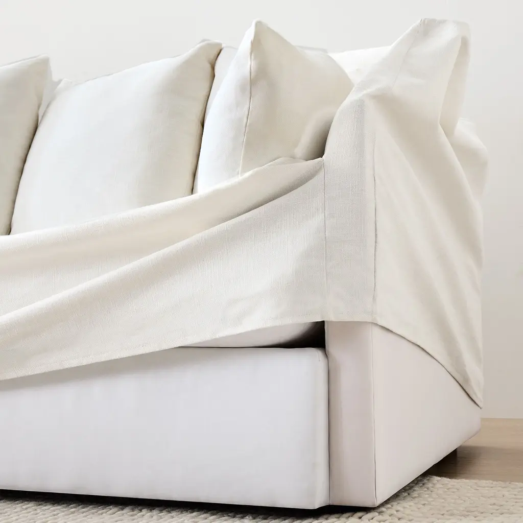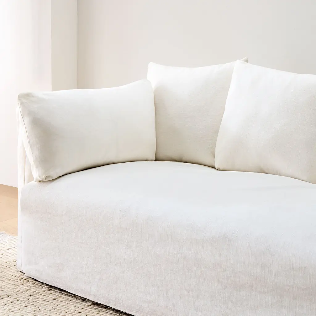 Its frame is piled with plush cushions on all sides. Deep-seated design feels just like a cozy cocoon. Removable skirted slipcover makes cleaning a breeze. Hand-built frames with hand-finished upholstery.