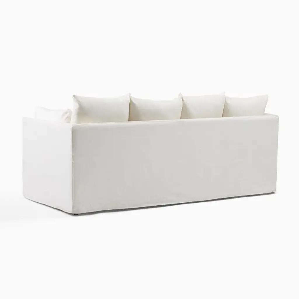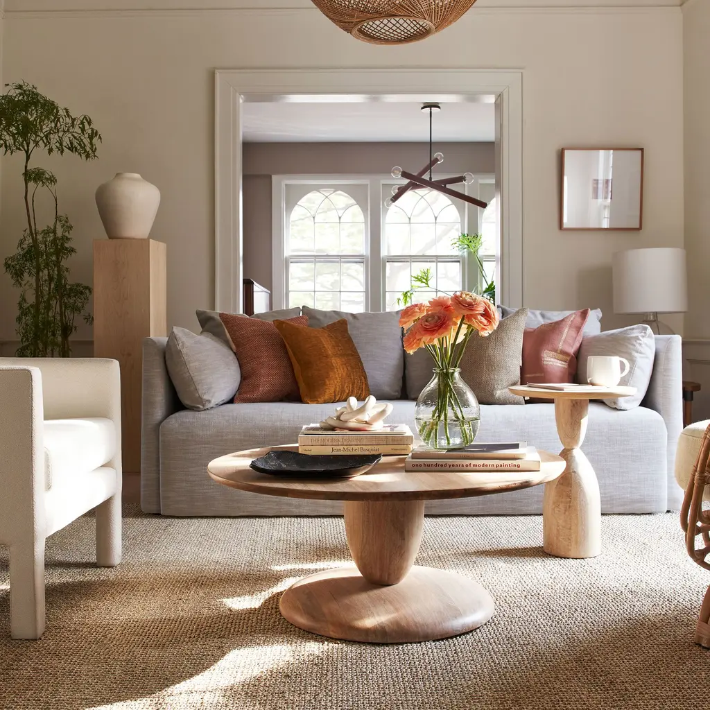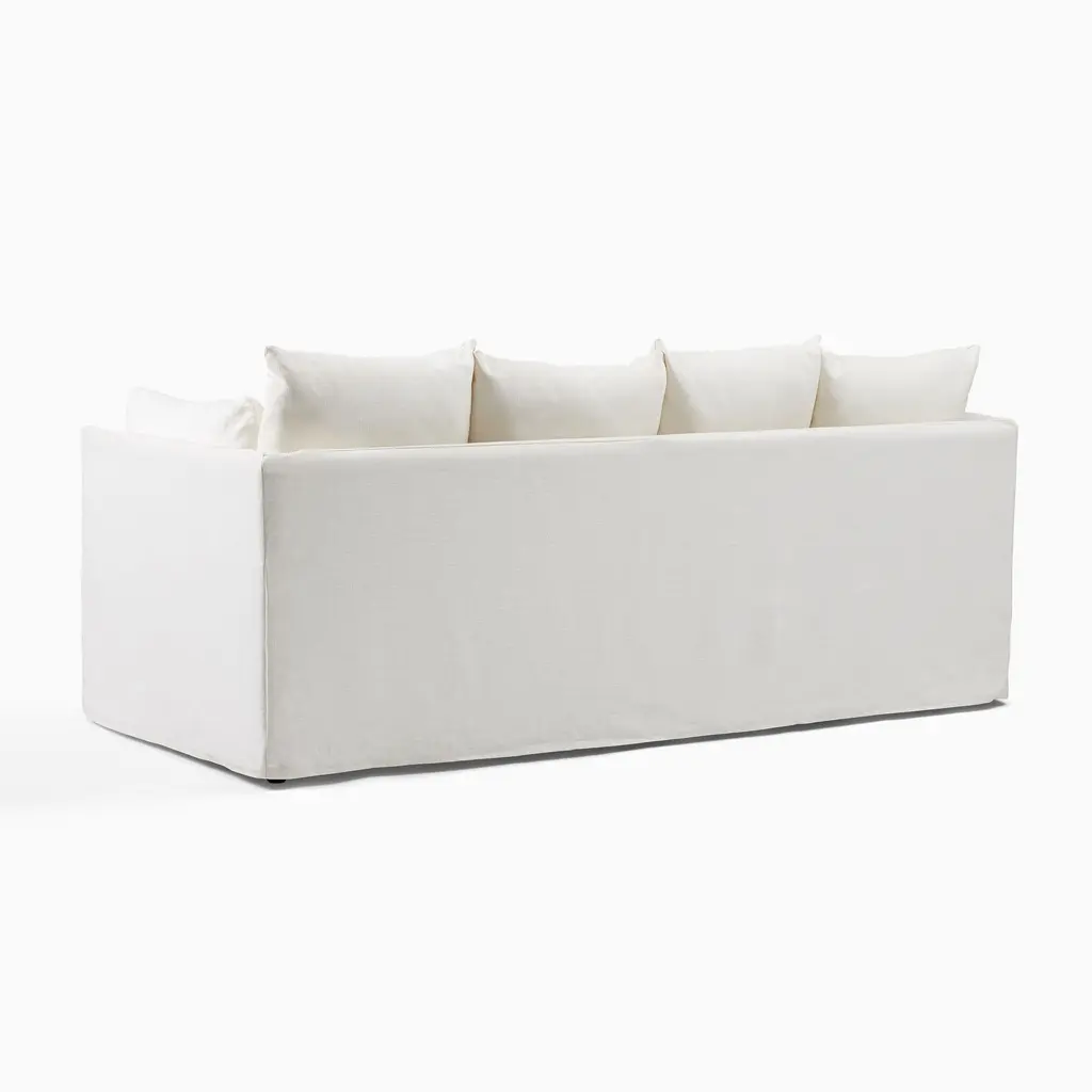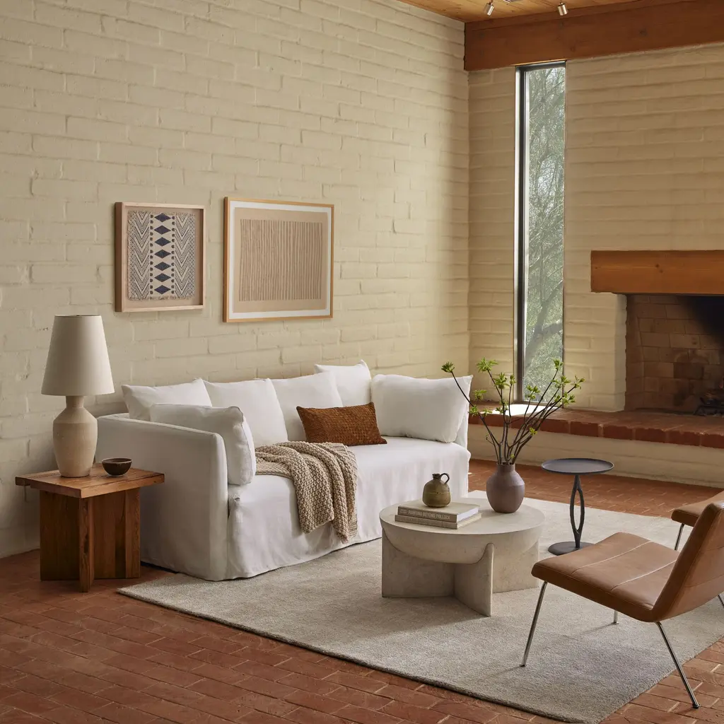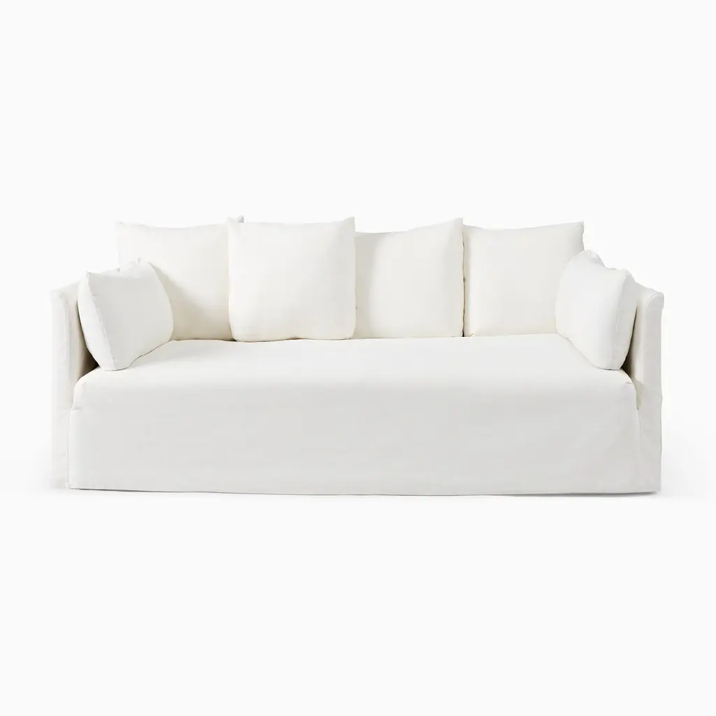Its frame is piled with plush cushions on all sides. Deep-seated design feels just like a cozy cocoon. Removable skirted slipcover makes cleaning a breeze. Hand-built frames with hand-finished upholstery.