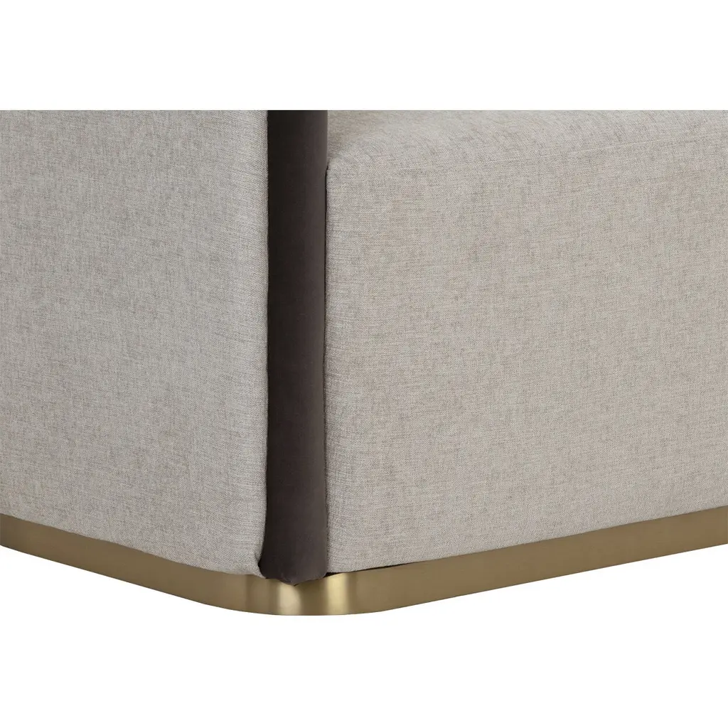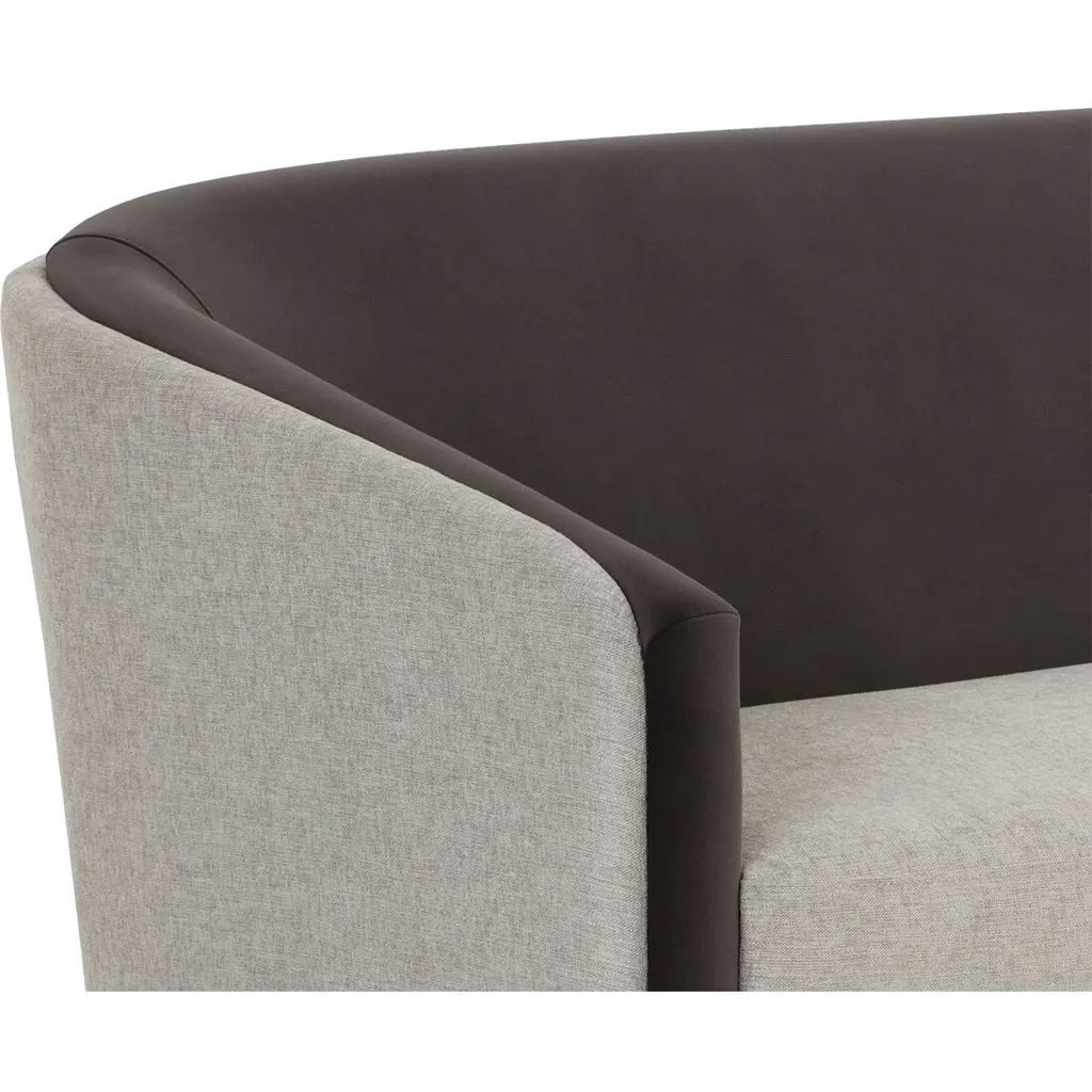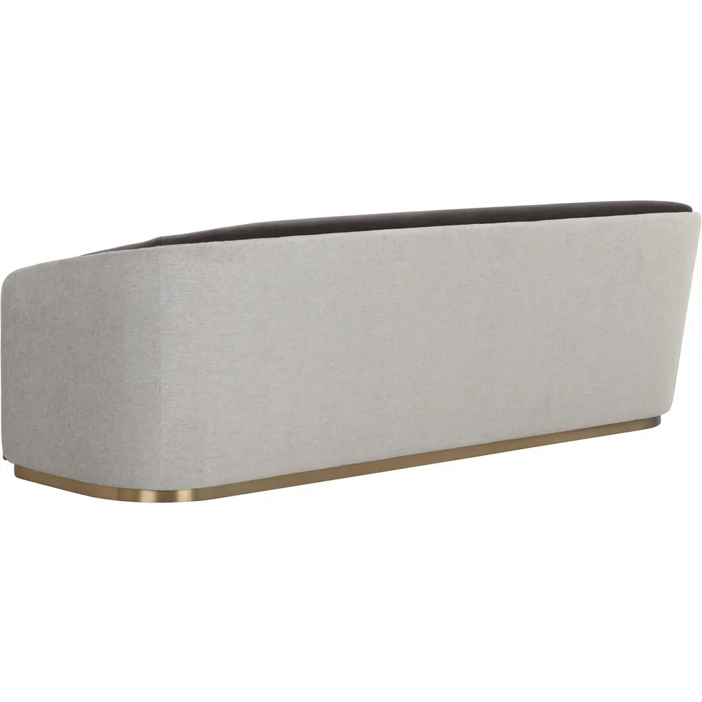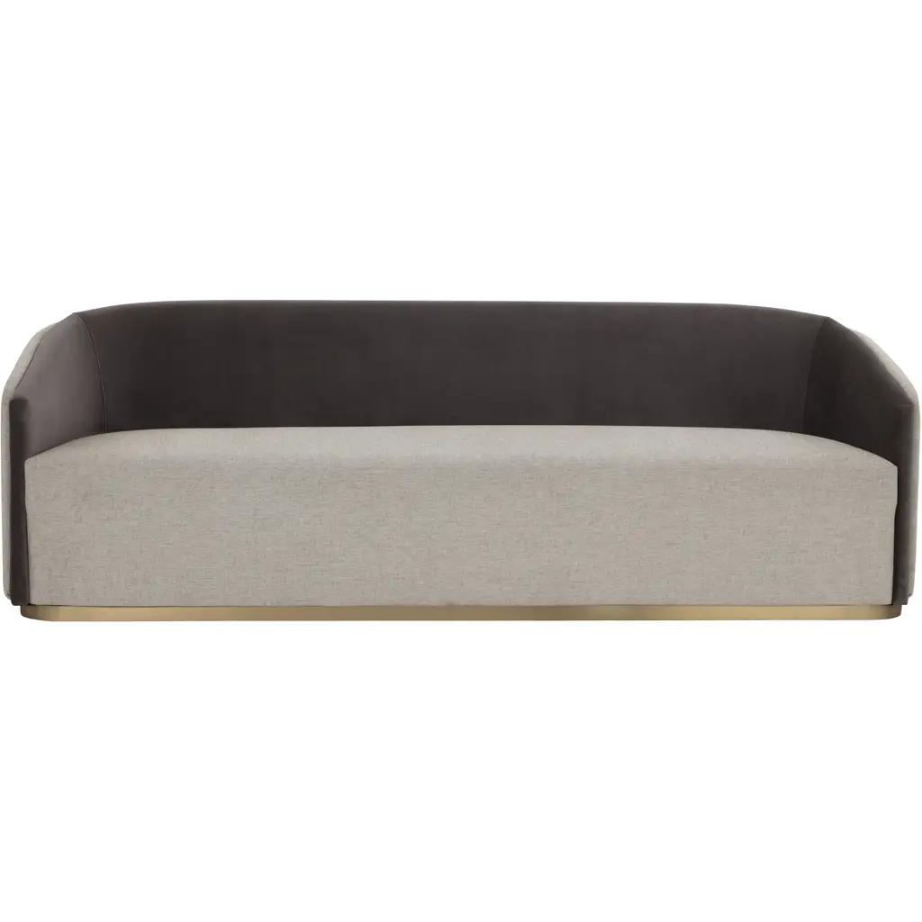 With an alluring seatback, the Sheva Sofa will add a touch of comfort to any space. Features an upholstered exterior and seat in ernst silverstone fabric, and completed with coordinating meg ash fabric on the interior seat. A powder-coated steel base provides an elegant accent to the overall look.