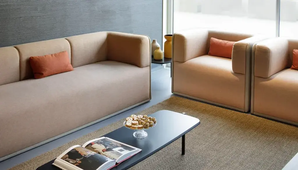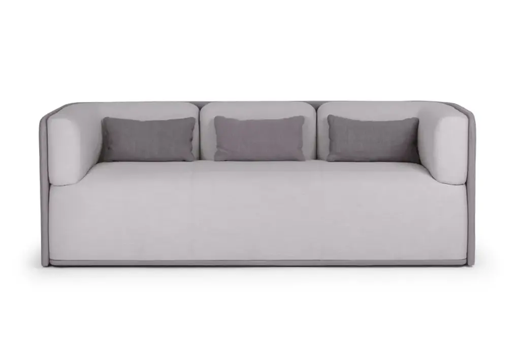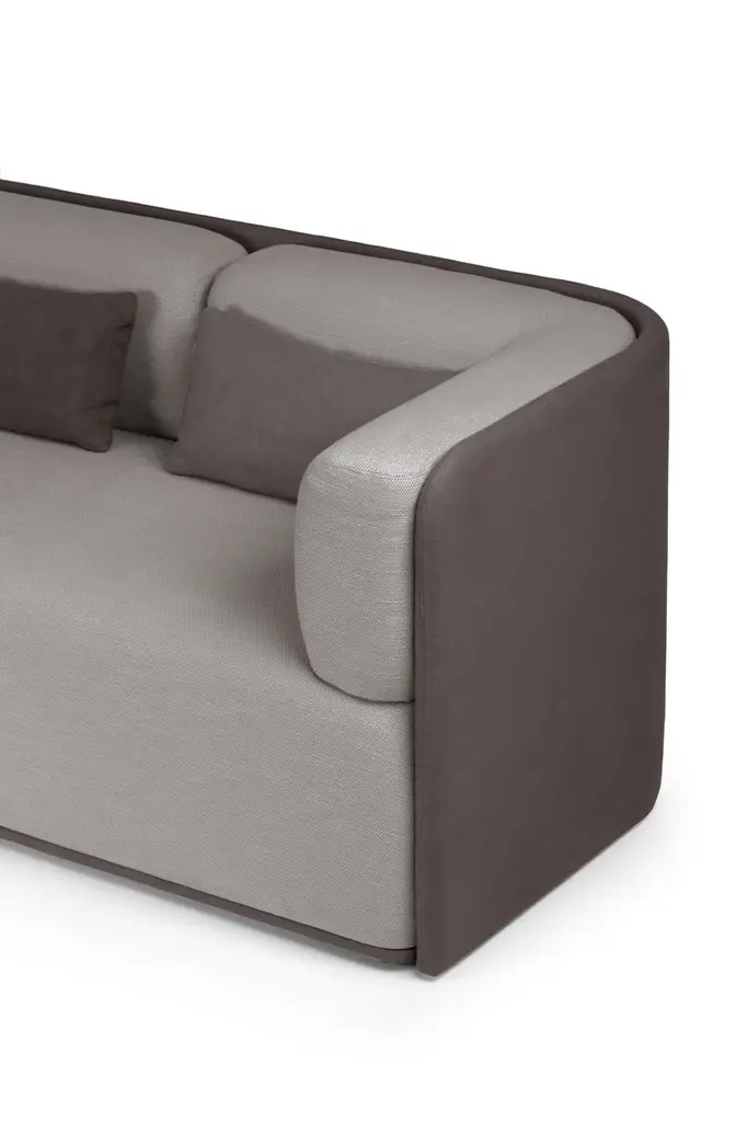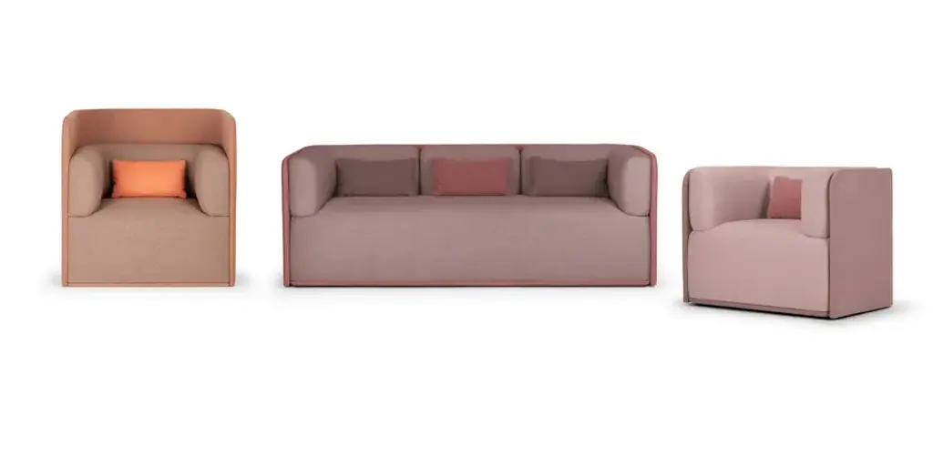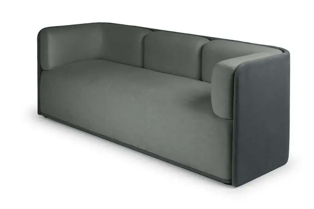 Sho is a 3 seater sofa with inner wooden frame, seat with elastic bands, variable density flexible foam padding. Polypropylene feet. Upholstery in fabric or leather (see color chart).Collection of sofas characterized by a powerful physical presence. The sinuous shapes are enclosed within a rigorous external shell that supports the backrest and armrests.The Sho system consists of an armchair, a two or three seater sofa, a pouf and a chaise lounge. All its elements are available in two versions: low backrest for contract and living environments, high backrest for greater privacy and therefore suitable for work environments. They can also be combined to create sharing spaces made even more functional by the possible accessories that can be integrated, such as electrical sockets and worktops.
