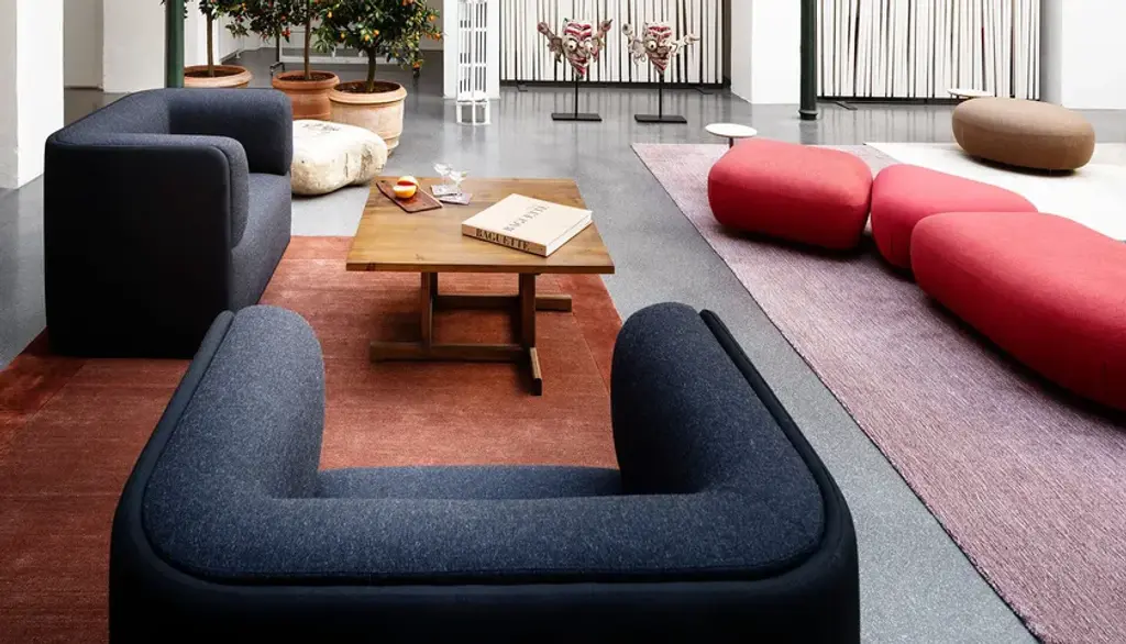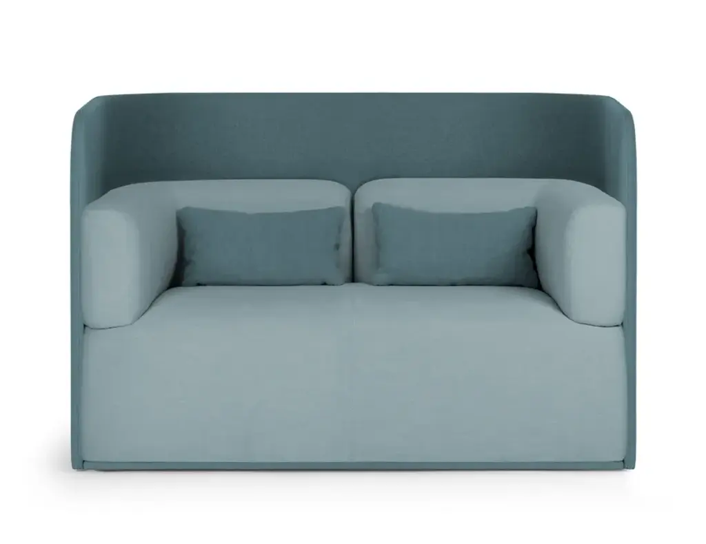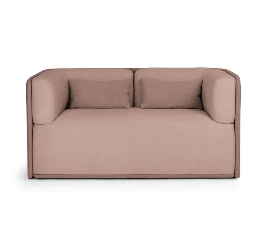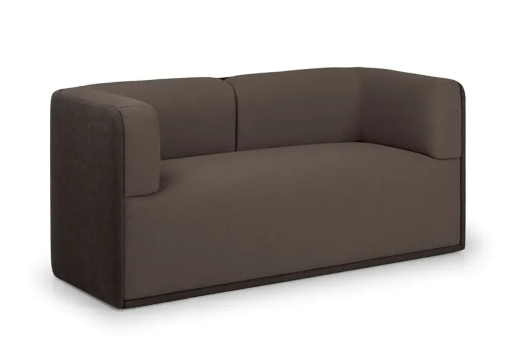 Sho is a 2 seater sofa with inner wooden frame, seat with elastic bands, variable density flexible foam padding. Polypropylene feet. Upholstery in fabric or leather (see color chart).Collection of sofas characterized by a powerful physical presence. The sinuous shapes are enclosed within a rigorous external shell that supports the backrest and armrests.The Sho system consists of an armchair, a two or three seater sofa, a pouf and a chaise lounge. All its elements are available in two versions: low backrest for contract and living environments, high backrest for greater privacy and therefore suitable for work environments. They can also be combined to create sharing spaces made even more functional by the possible accessories that can be integrated, such as electrical sockets and worktops.