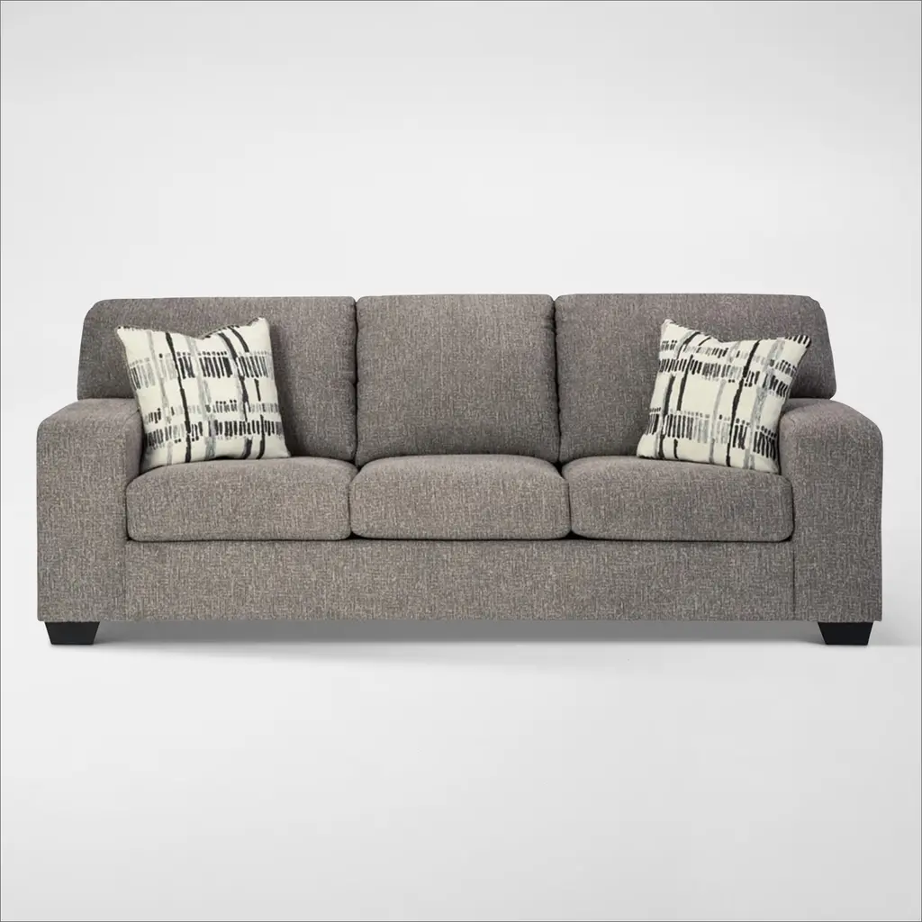 With clean lines and platinum-gray upholstery, the Alessio Sofa is a modern classic ready for your personal touch. Its oversized track arms and chic monochromatic throw pillows are the cherry on top, creating a silhouette that blends seamlessly with any living space.