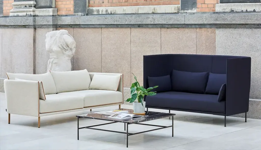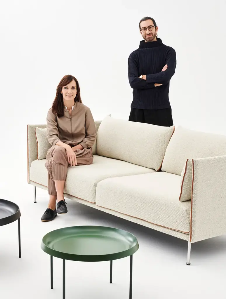 GamFratesi’s Silhouette Sofa series is characterised by the smooth curve of the sofa’s back, which seamlessly combines a strong character with a simple, organic expression. With an angular front view and defining piping details, the sofa appears compact and economical with space, yet light and spacious and offers generous seating. The family comprises sofas in different sizes and heights, with legs available in metal or solid wood and a number of selected textiles to choose from. The different configurations and strong structural language make the sofa a natural choice for defining space and creating intimacy in large and small areas in private and public contexts. Frame: Moulded reinforced fibre glass shell upholstered with PU foam comprising foam of varying hardness.Seat cushions: Polyurethane foam. Seat and backrest cushions stuffed with a combination of feathers and foam pieces.Legs: H17,5 cm powder coated steel, chromed steel or solid oak.Available in a large selection of standard fabrics and leathers.Available in 4 different base finishes:- Black powder coated steel (RAL 9005)- Chromed steel- Oiled solid oak- Smoked solid oak