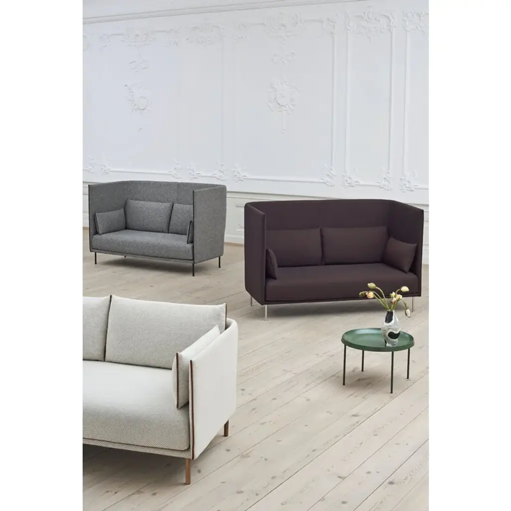 HAY’s Silhouette sofa has a simple and sleek silhouette softened by the smooth curve of its back. Silhouette stands on slim legs in either steel or oak, and it has been upholstered in high-quality fabric. Leather piping details add a graphic touch to the upholstery. Thanks to the light yet capacious structure, Silhouette will find its place in both domestic living rooms and public lounge areas, and its crisp, minimalist look will stand the test of time. Designed by GamFratesi, the Silhouette range is available in many different size, upholstery and leg options.