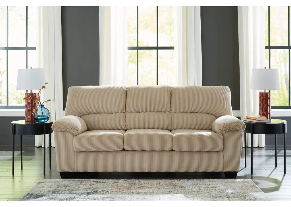 The SimpleJoy sofa is a cozy interpretation of casual contemporary style. Its super-soft corduroy makes curling up with a book or your favorite show that much more comfortable. You're sure to appreciate its sincere styling and homey approach to relaxation. Weight 130.000 lbs. (58.5kgs.)
