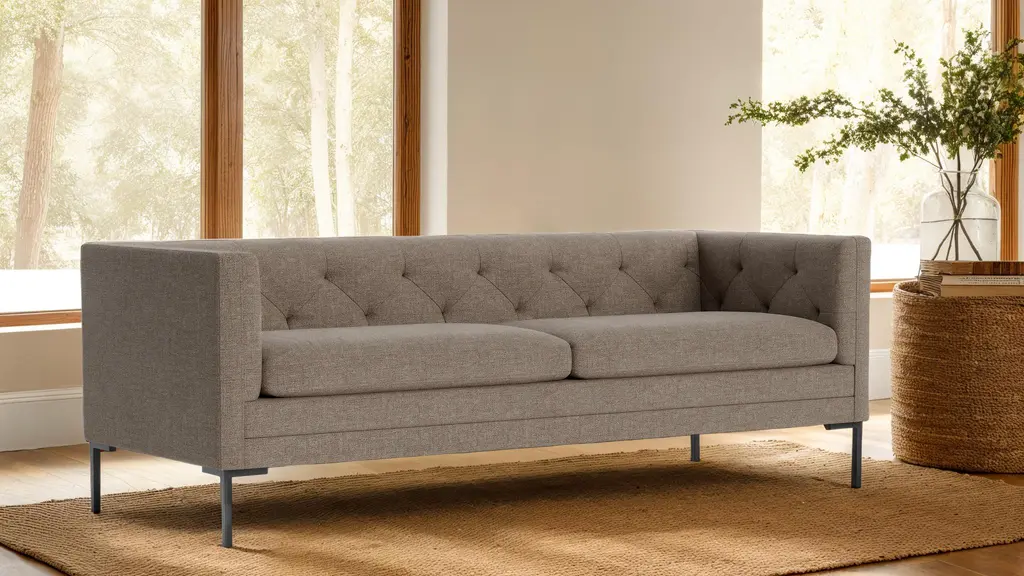 DESIGN A modern take on traditional tufting, the Sit Tight collection blends architectural elegance with everyday comfort. Elevated by a tailored silhouette and sleek metal legs, the Sit Tight Sofa can be customized in your choice of fabrics, sizes, and leg finishes - creating a design that's as unique as your space. Handcrafted in the United States. FEATURES Solid Foundation: Our frames are constructed from precision-cut, FSC-certified engineered wood for unmatched strength and stability, featuring reinforced, interlocking joinery for added durability. Customizable Cushion Options: Choose from standard or down alternative cushions. Standard cushions offer our most supportive sit and a sleek, tailored look that requires minimal fluffing. These cushions feature high-quality, high-resiliency CertiPUR-US® foam core seats wrapped in premium fiber with a high-density foam tight-back cushion. Down alternative cushions deliver our most relaxed yet supportive sit, with a more casual look that requires moderate fluffing. These cushions feature high-quality, high-resiliency CertiPUR-US® foam core seats wrapped in plush down-alternative fiber with a high-density foam tight-back cushion. CertiPur-US® foam is held to the highest standards of product safety and durability, so you can rest easy. Supportive Webbing Suspension: Designed to maximize comfort, our premium webbing system provides a resilient foundation. Customizable Upholstery: Choose from a vast selection of durable premium and performance fabrics and genuine Italian leather to personalize your Sit Tight Sofa's look.